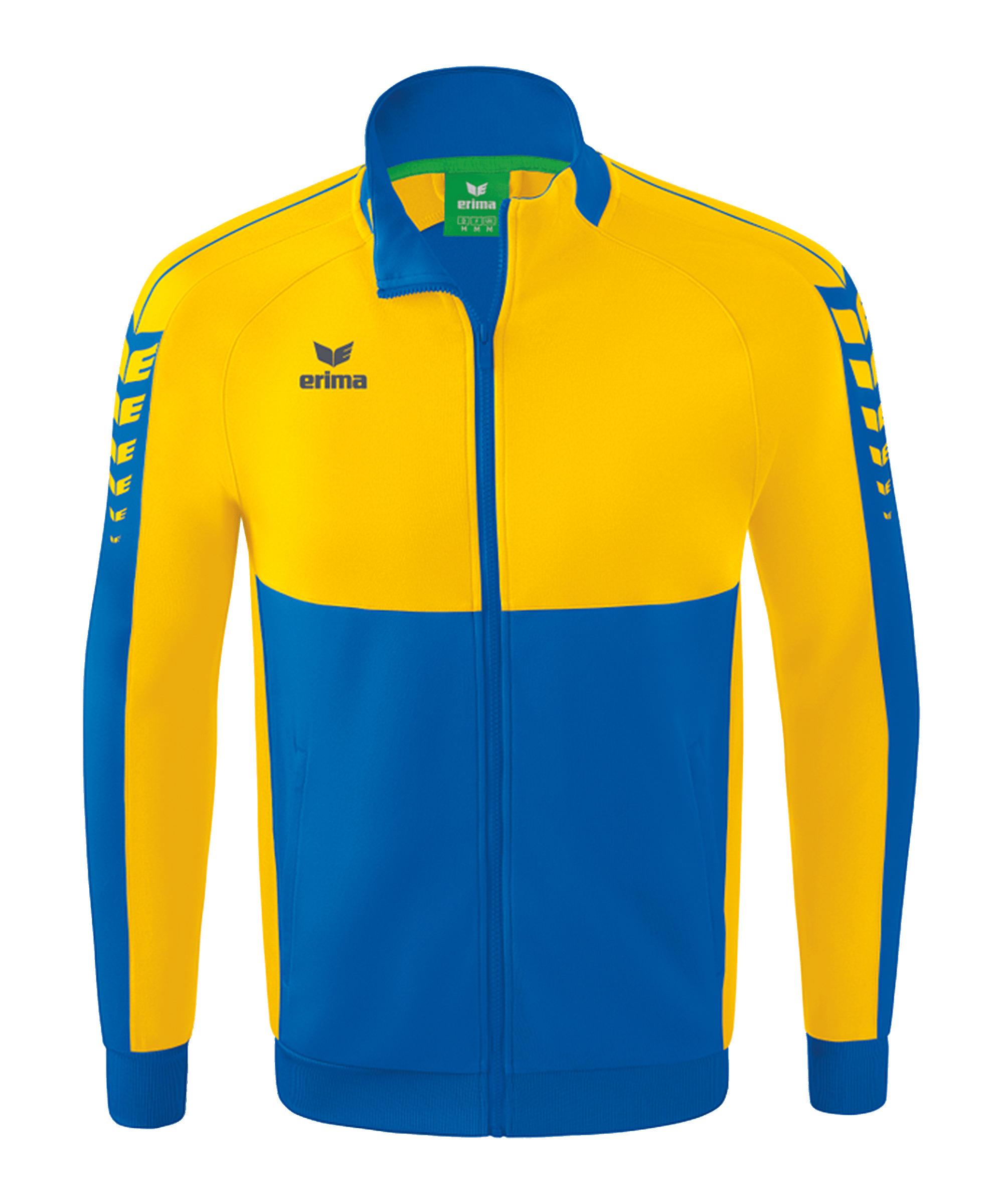 Erima bringt mit der Sportjacke in Rot ein Produkt auf den Markt, mit dem ihr hervorragend ausgestattet seid und selbst bei Regenwetter beweisen werdet, was in euch steckt. Sie ist atmungsaktiv, super bequem und leicht. Außerdem wird euch eine hohe Strapazierfähigkeit geboten. Beim Training und beim Aufwärmen seid ihr so perfekt vorbereitet. Optische Unterstützung bekommt diese langärmlige Sportjacke durch einen trendigen Stehkragen. Die Sportjacke lässt sich durch einen Reißverschluss verschließen und besitzt seitliche Zipper-Taschen. Mit dieser Jacke könnt ihr euch ideal auf euren nächsten Gegner vorbereiten. Produktdetails: Seitliche Zipper-Taschen bieten Stauraum Ausschnitt: Stehkragen Langärmlig Eigenschaften: super bequem, atmungsaktiv, leicht Strapazierfähig Material: 100% Polyester