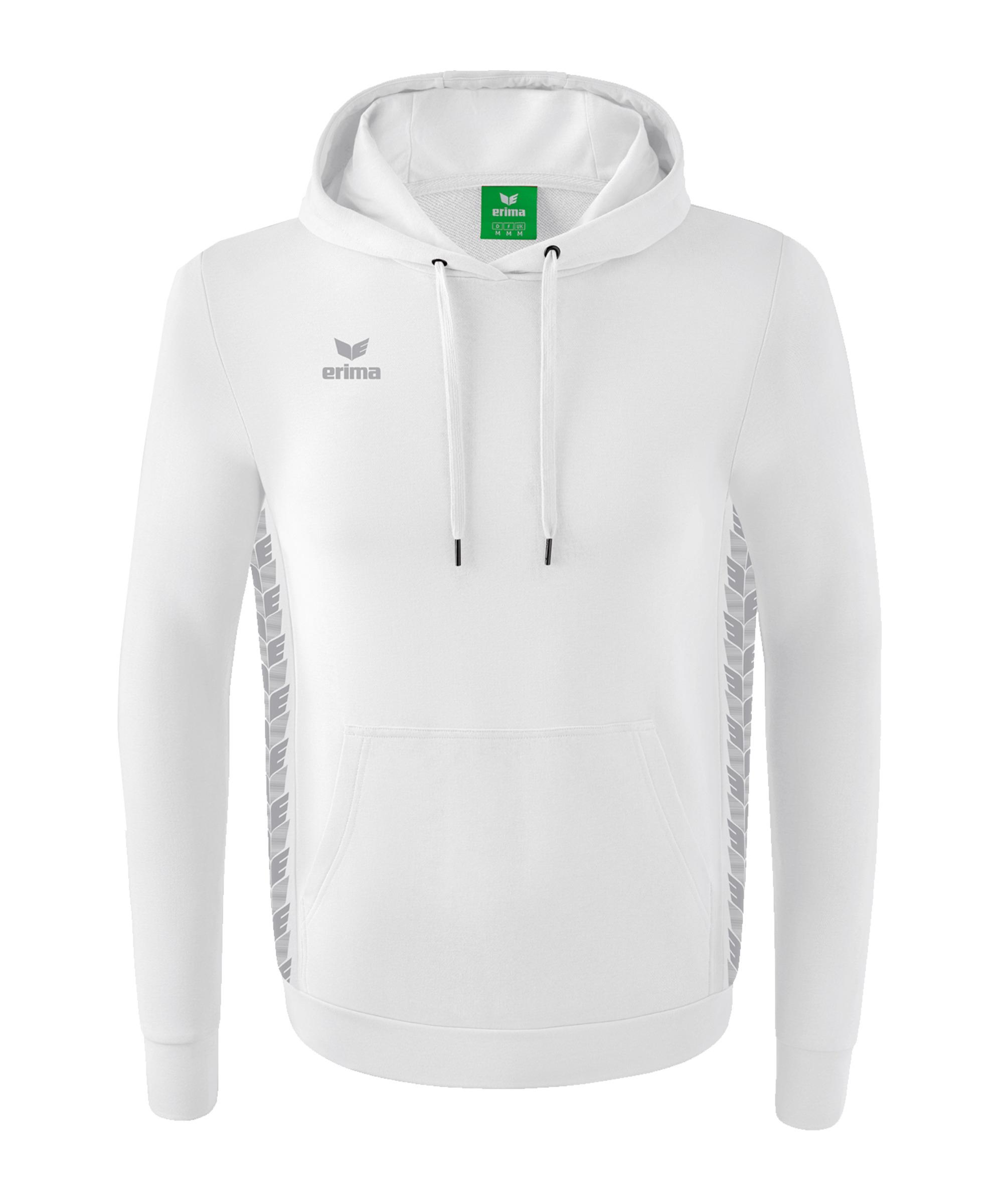 Deine ganze Mannschaft kann ihre Zusammengehörigkeit perfekt nach außen tragen mit dem bequemen Modell in Weiß. Mit dem Hoody aus dem Hause Erima kann man absolut nichts verkehrt machen. Die super bequeme, wärmende und atmungsaktive Funktionsweise lässt ihn überzeugen. Dieser langärmlige Hoody besitzt einen legeren Rundhals-Ausschnitt. Der Hoody hat eine Känguru-Tasche. Für Aktivitäten bei schlechten Witterungsbedingungen seid ihr mit der Kapuze mit Kordelzug bestens ausgerüstet. Mit diesem Hoody könnt ihr euch ideal auf euren nächsten Gegner vorbereiten. Produktdetails: Extras: Kapuze mit Kordelzug Ärmellänge: Langärmlig Ausschnitt: Rundhals-Ausschnitt Taschen: Känguru-Tasche Eigenschaften: super bequem, atmungsaktiv, wärmend Material: 60% Baumwolle, 40% Polyester