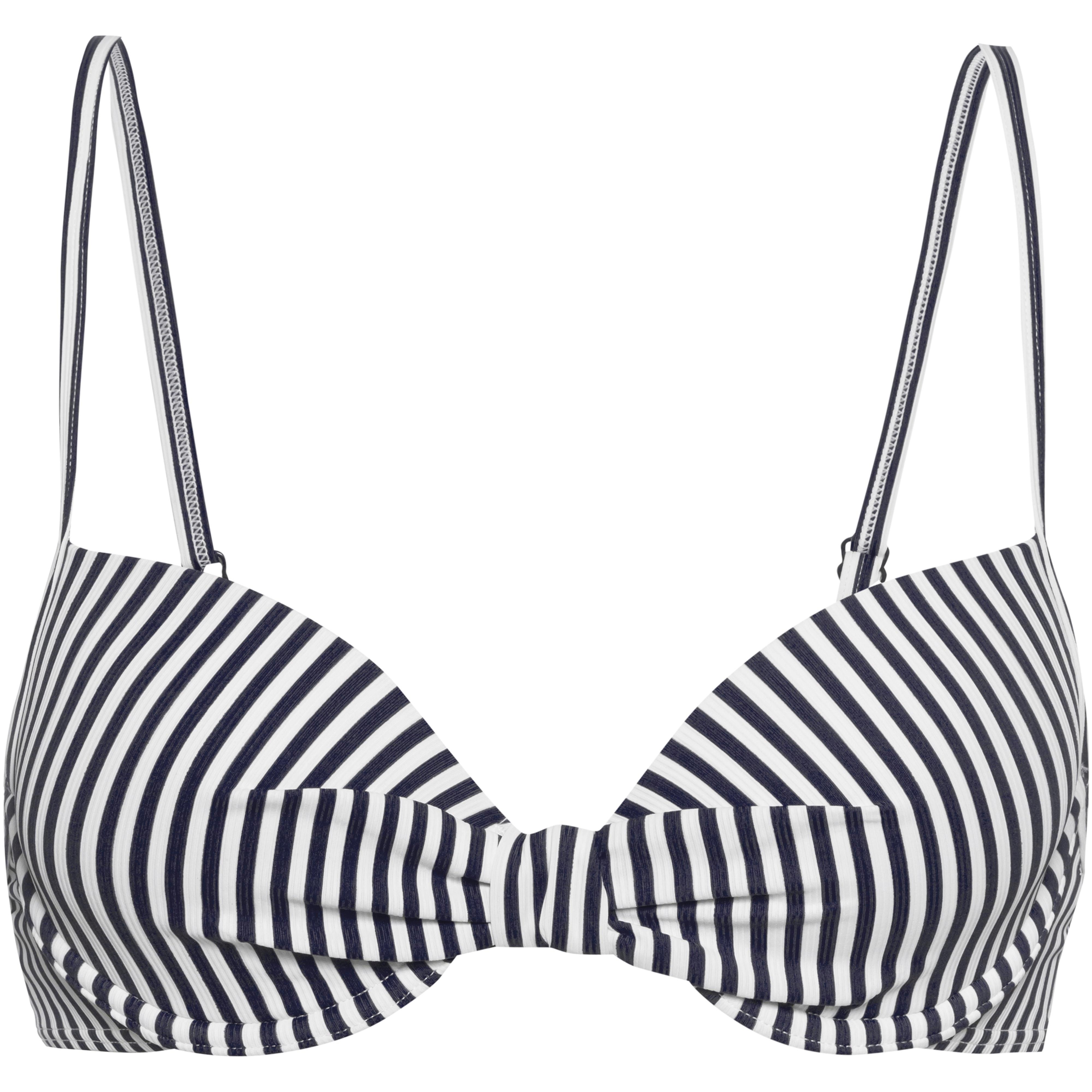 Gestreiftes Bikini-Oberteil mit Bügeln und wattierten Cups; Knotendetail; schnelltrocknendes Material; verstellbare Spaghettiträger; Clip-Verschluss auf der Rückseite; Material 90% Polyamid, 10% Elastan.