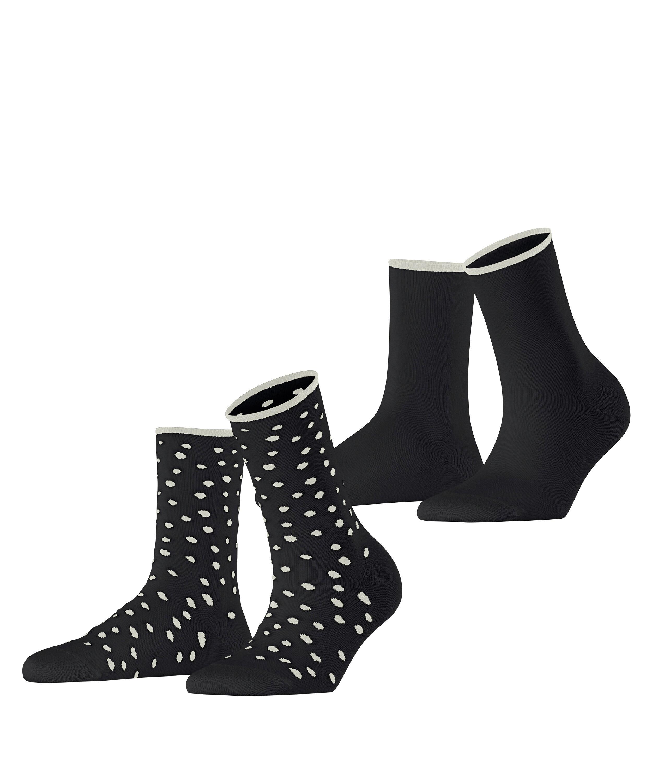 Diese Damensocken bieten ein verspieltes Design mit vielen Punkten. Das kreative Punktemuster, welches aussieht wie gezeichnet, verleiht jedem Outfit eine individuelle Note und setzen modische Akzente. Aus hochwertiger Bio-Baumwolle und im praktischen 2er-Pack erhältlich.