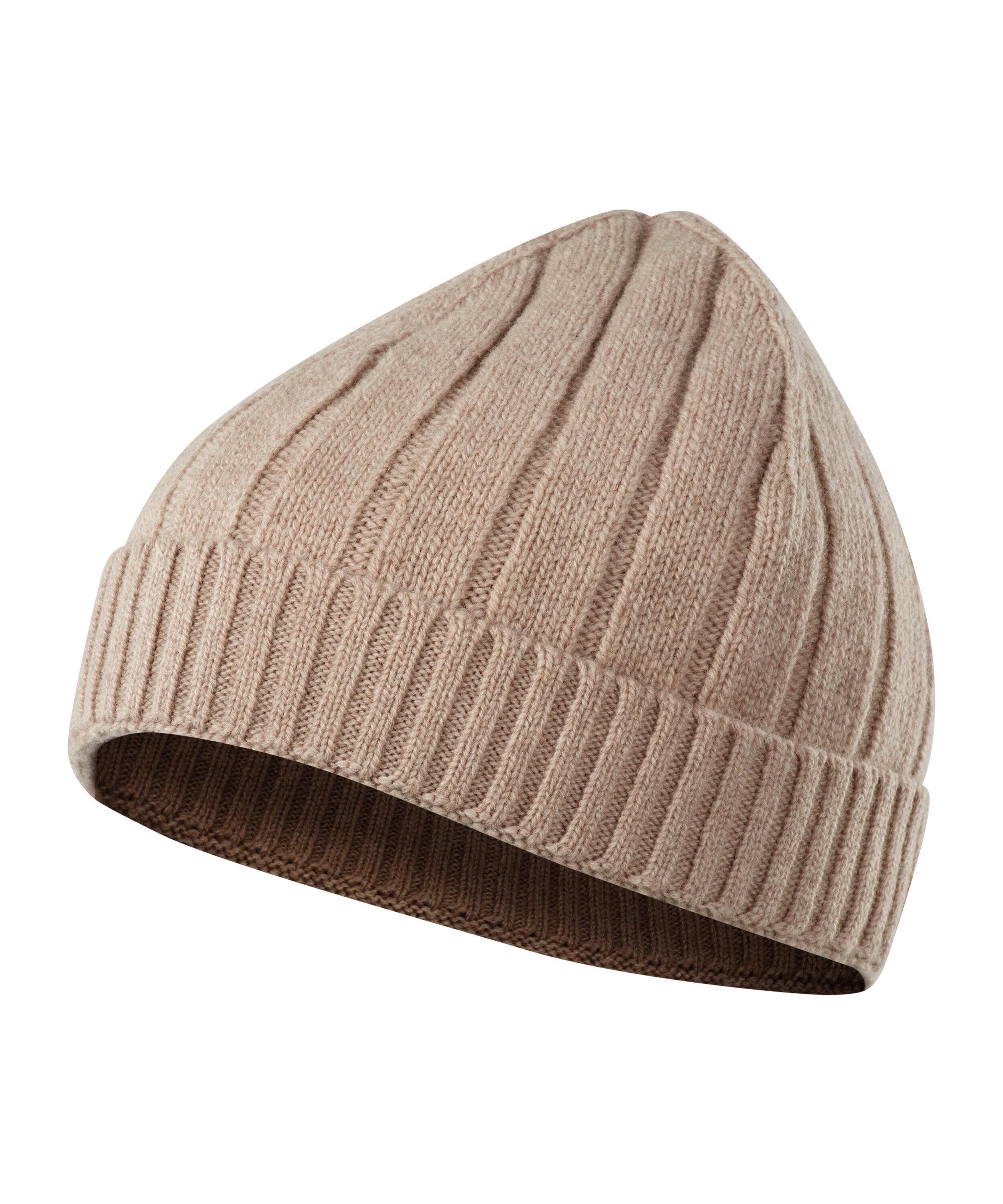 Sportive Mütze mit breiter Rippenstruktur und feiner geripptem Umschlag. Durch den Kaschmiranteil ist die Mütze sehr weich und trägt sich besonders angenehm.