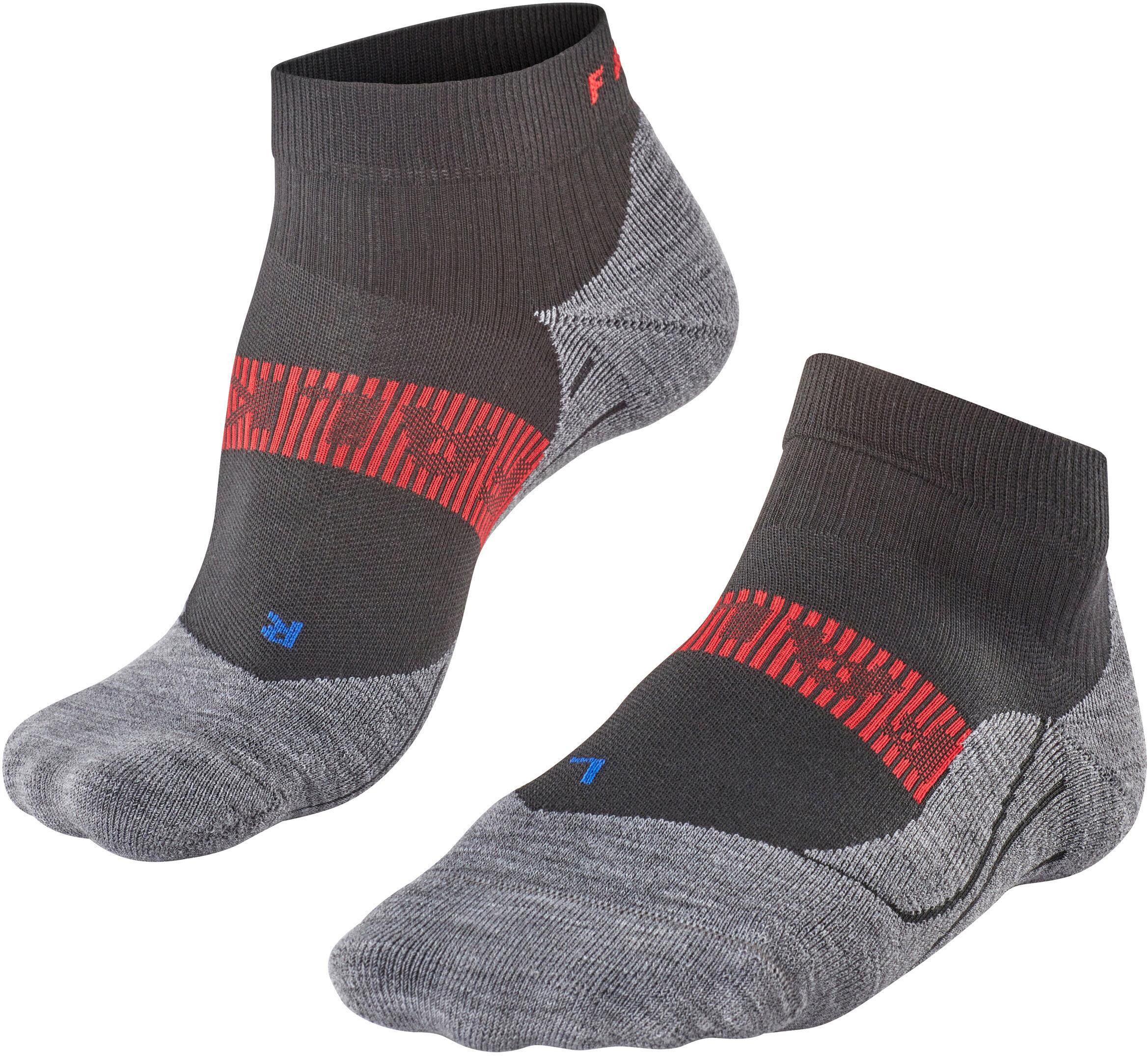 Kurze, stützende Laufsocken aus schnelltrocknendem Material; hoher Tragekomfort und optimale Kraftübertragung dank der mittelstarken Polsterung; leichte Kompression für mehr Stabilität und ein reduziertes Verletzungsrisiko; die Füße bleiben trocken und blasenfrei dank der 3-lagigen, feuchtigkeitsregulierenden Konstruktion; anatomisch angepasste Rechts-Links-Passform; Material 54% Polypropylen, 26% Polyamid, 18% Polyester (recycelt), 2% Elastan.