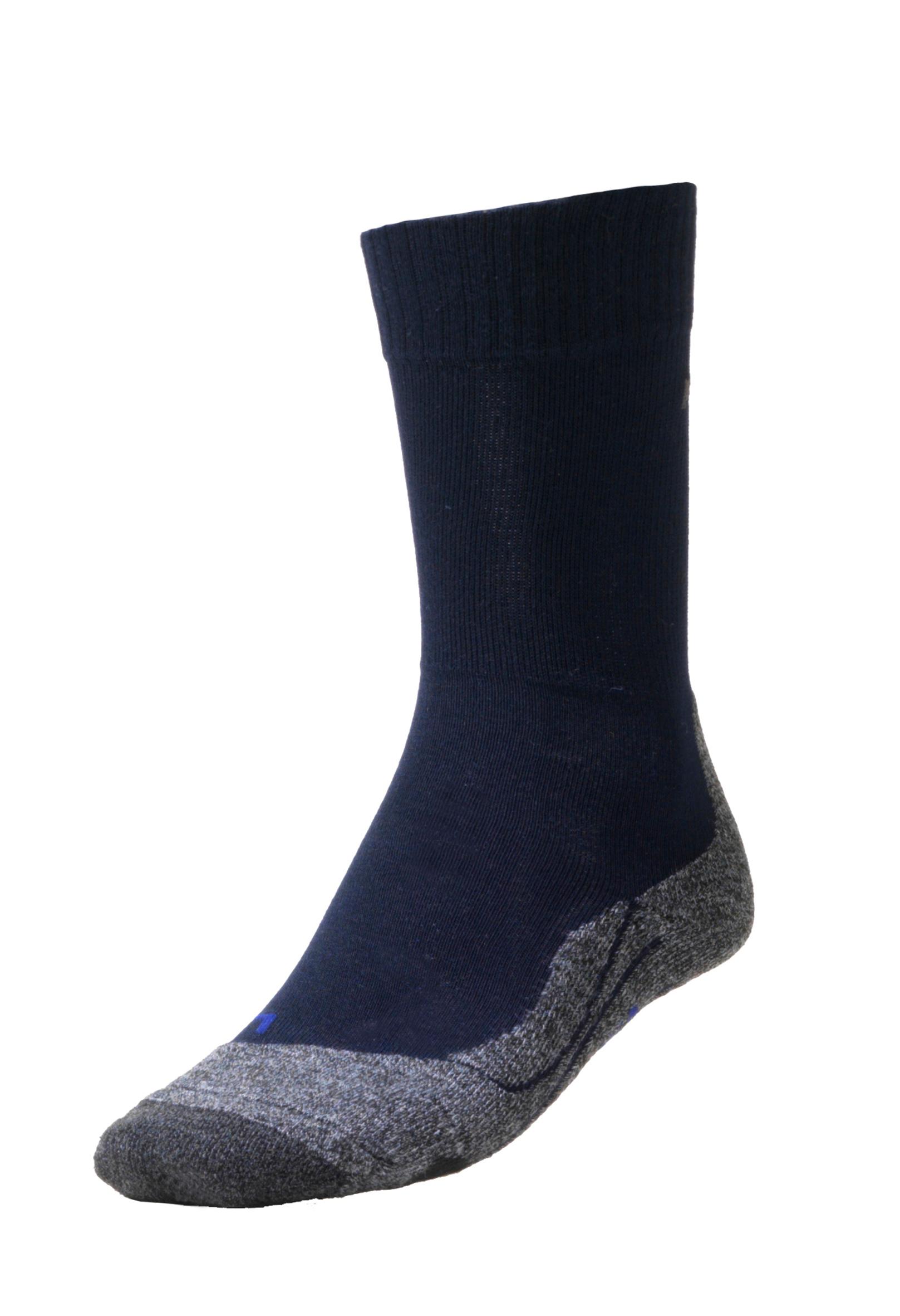 Falke TK2 COOL Trekkingsocke mit links/rechts Fußbett bietet Rundumschutz durch Überzehen- und Hochfersenplüsch, sowie einer extra Polsterung an den Ballen; Verstärkung und Air Channels an den Belastungszonen; der weiche Komfortbund sorgt für ein angenehmes Tragegefühl; schnelltrocknend und kühlend dank Hydrotechfaser; Verfügbare Größen: Größe 1 (35-36), Größe 2 (37-38), Größe 3 (39-40), Größe 4 (41-42); 49% Polyester, 39% Polypropylen, 12% Polyamid.