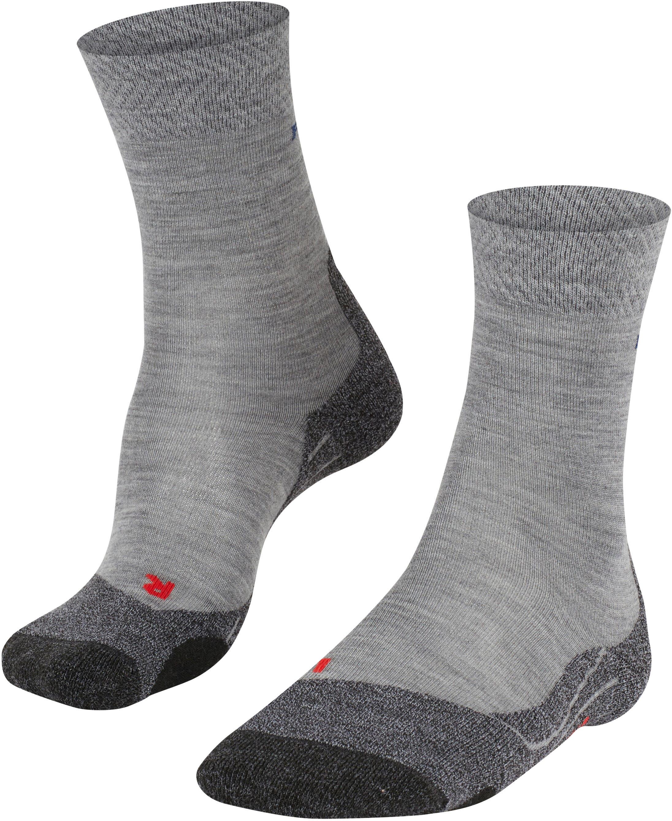 Falke TK2 MELANGE. Komfortable Wandersocken mit mittelstarker Polsterung; Melange-Optik; Merinowoll-Mix; gute Wärmeisolation; anatomisch geformtes Fußgewölbe; Zehenbox; hoher Feuchtigkeitstransport; Links-/Rechts-Passform; Komfortbund; Material 45% Polypropylen, 32% Wolle (Schurwolle), 23% Polyamid.