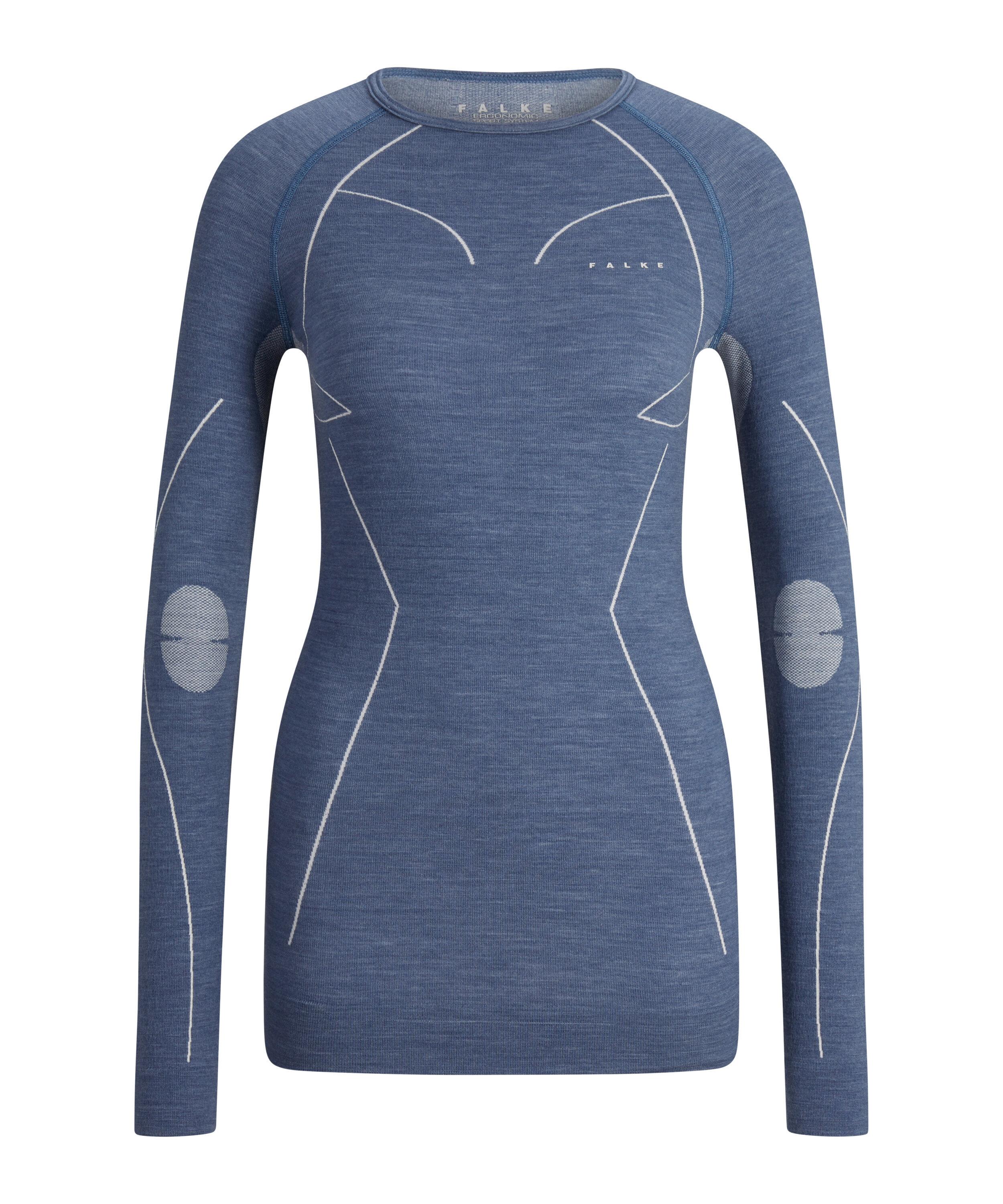 Falke Anschmiegsames Skishirt mit Merinowolle für ein optimales Körperklima, hohen Tragekomfort und gleichbleibende Isolationskraft auch im feuchten Zustand; der First Layer bietet zudem eine schnelle Rücktrocknung durch Belüftungszonen an Achsel und Ellbogeninnenseite, während Flexzonen an Schultern und Ellbogen maximale Bewegungsfreiheit ermöglichen; mit doppellagiger Konstruktion im sensiblen Nierenbereich: Material 60% Schurwolle (Merinowolle), 37% Polyamid, 3% Elastan.