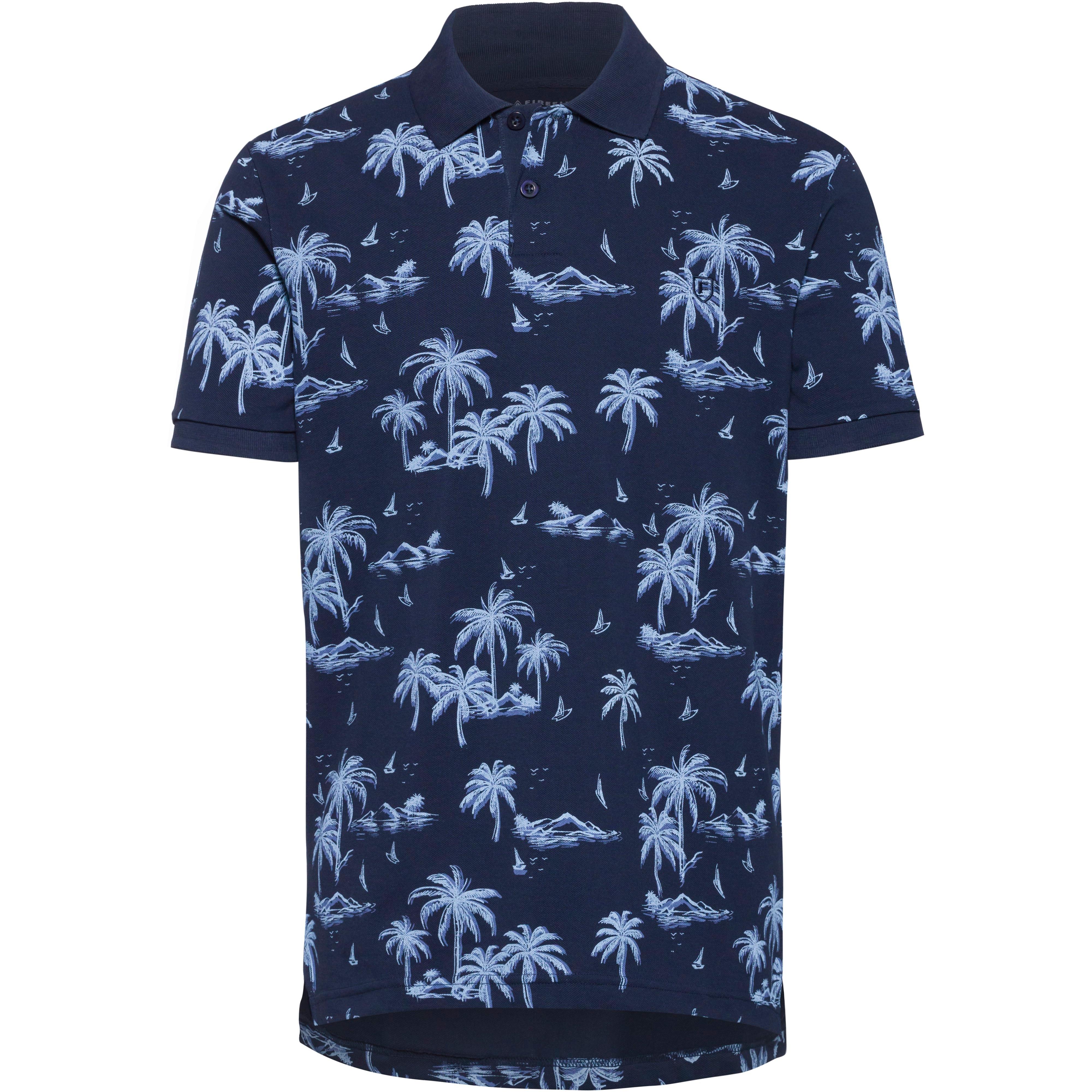 Poloshirt mit sommerlichem Allover-Print; klassischer Polokragen mit Knopfleiste; Markendetail; Material 100% Baumwolle.
