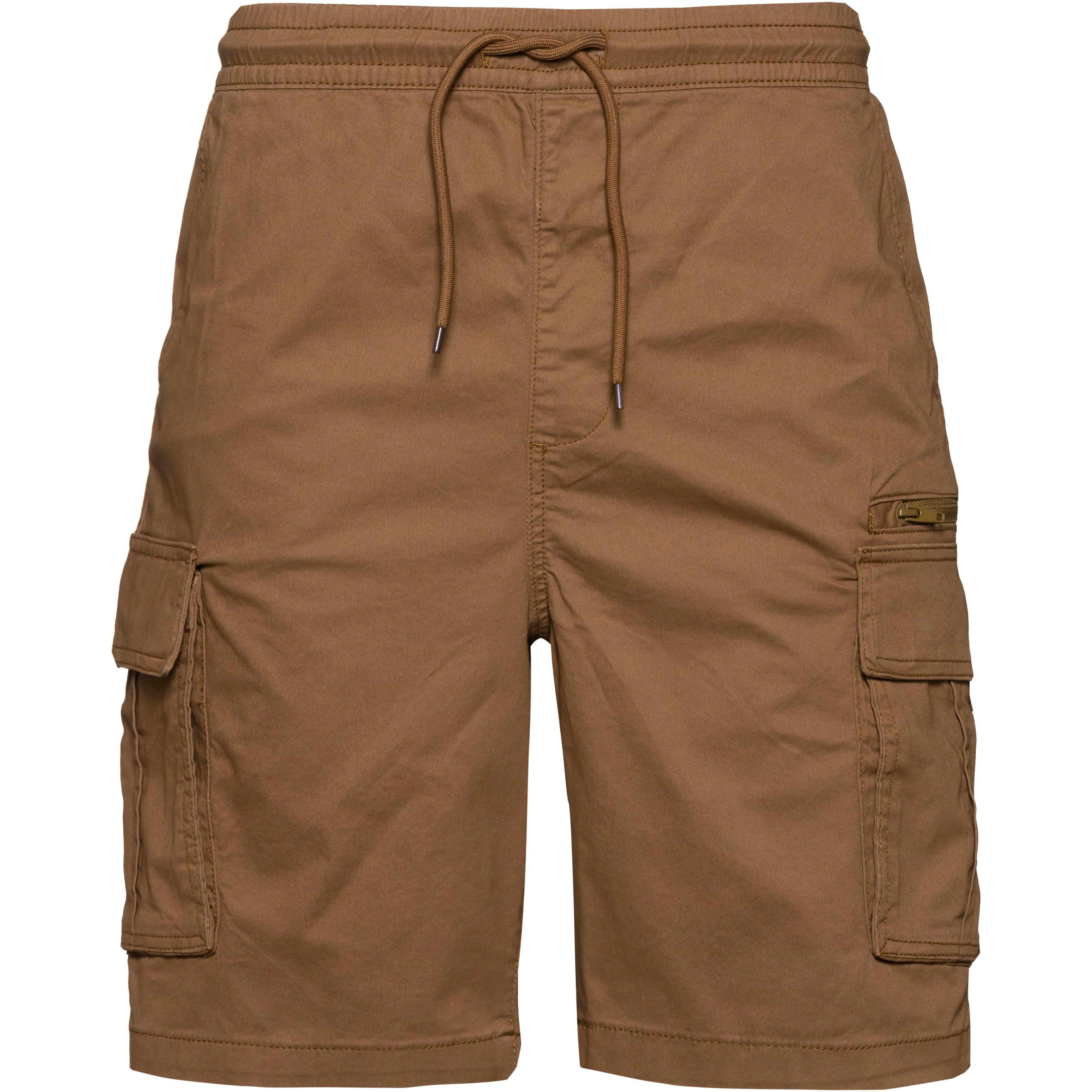 Cargoshorts; weitenregulierbarer Elastikbund mit integriertem Kordelzug; seitliche Eingriffstaschen; je 2 Bein- und Gesäßtaschen mit Klappen und Klettverschlüssen; Seitenlänge: ca. 50 cm (Gr. M); Material 97% Baumwolle, 3% Elastan.
