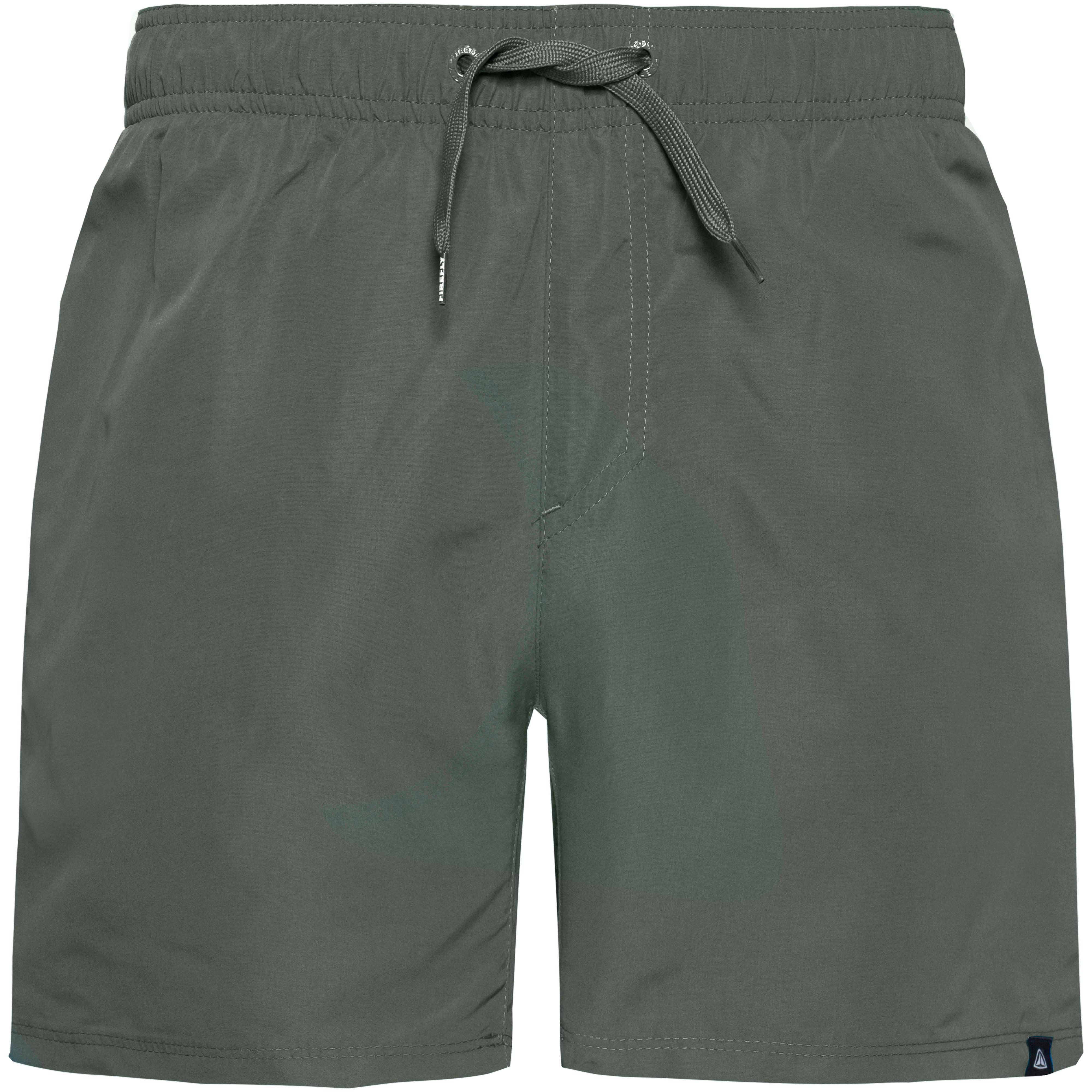 Badeshorts aus leichtem, schnelltrocknendem Material; elastischer Bund mit außenliegendem Kordelzug; 2 Eingrifftaschen; 1 Gesäßtasche mit Patte und Wasserablauf-Öse; Innenhose aus Mesh; Material 100% Polyester.