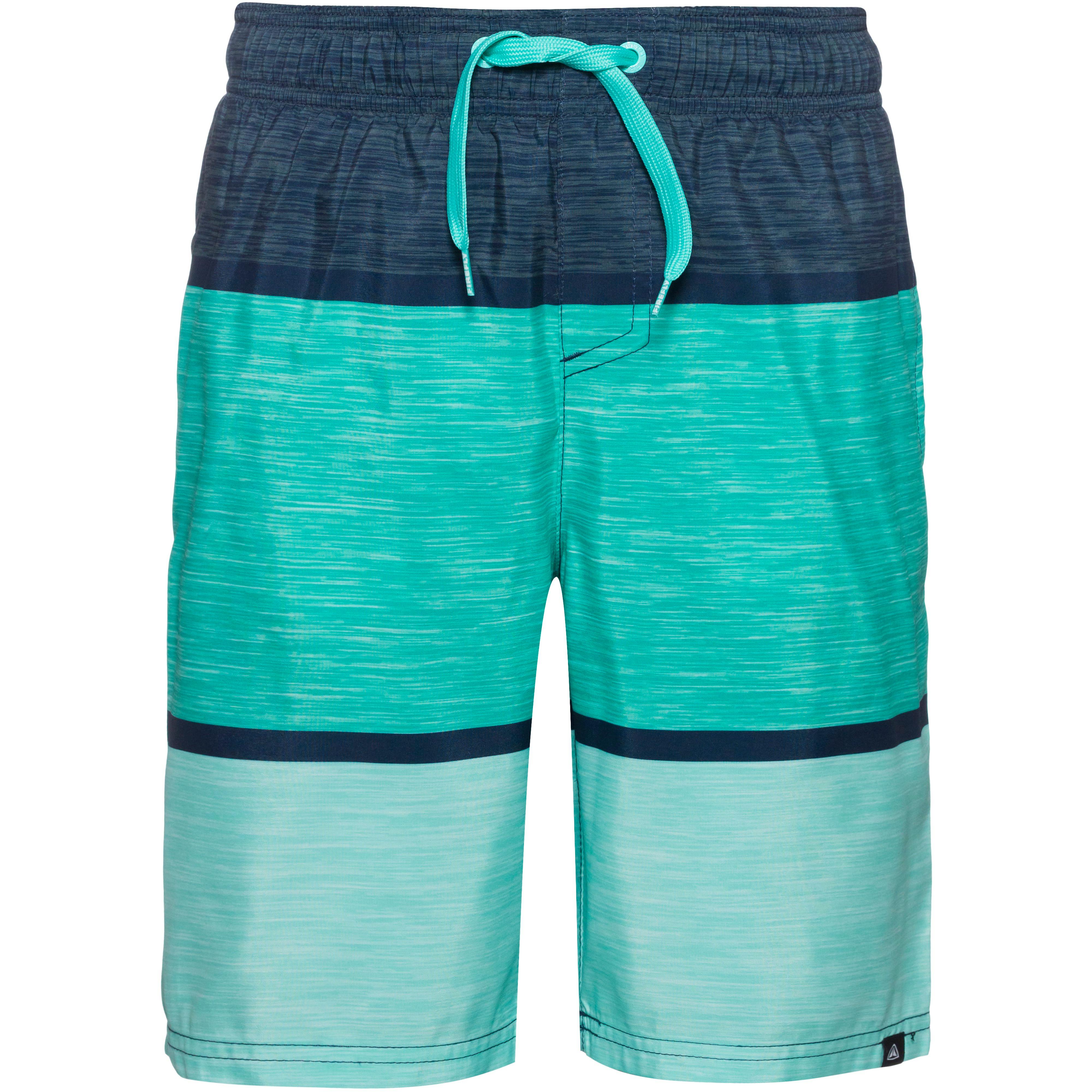 Badehose für Kinder, im stylishen Colorblock-Design; weitenregulierbarer Elastikbund mit integriertem Kordelzug; seitliche Eingriffstaschen; integrierter Slip aus Mesh; Material 100% Polyester (recycelt).