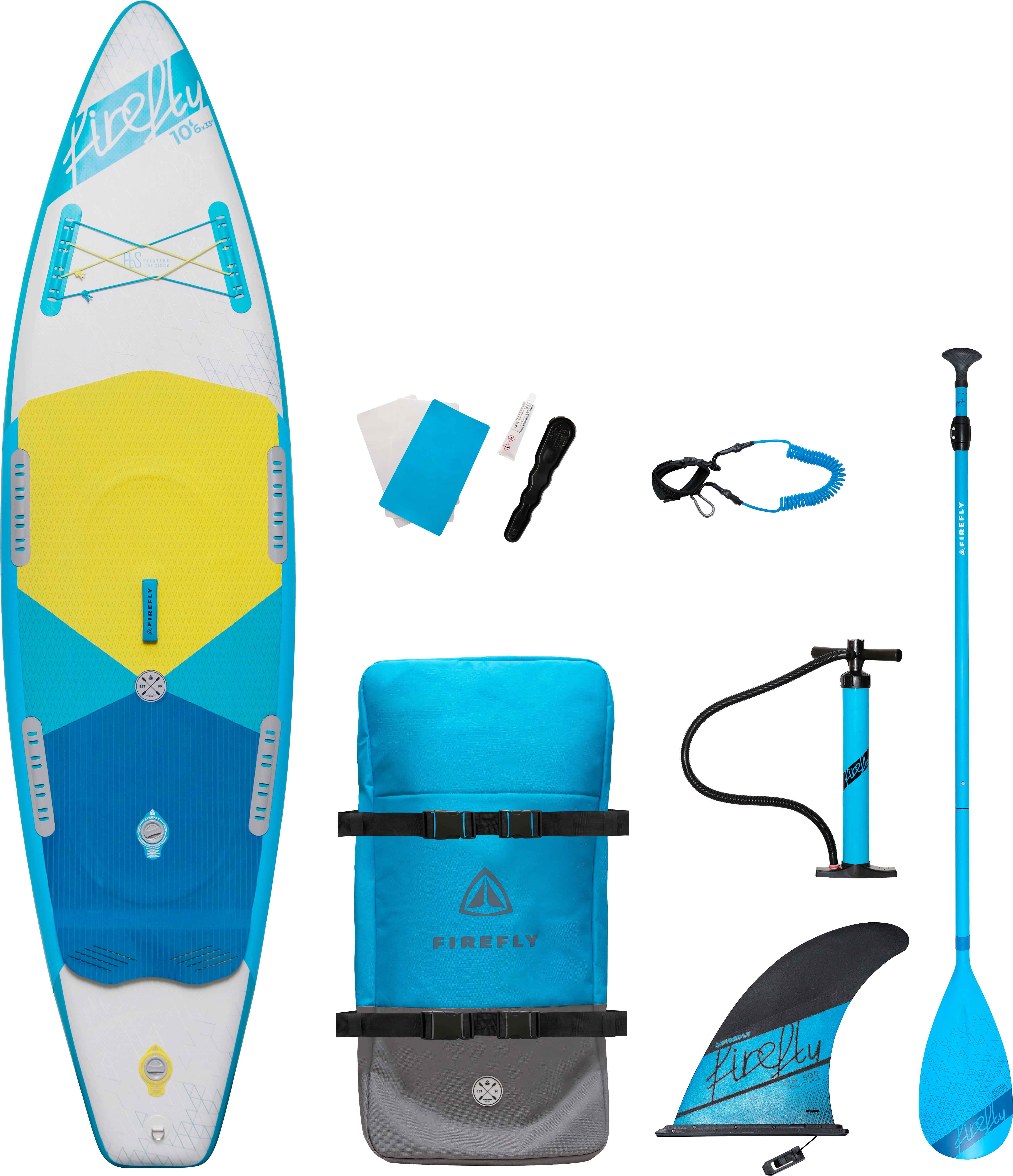 Aufblasbares Touring SUP Set in Dropstitch-Konstruktion; 2 separate Double Chamber-Luftkammern für erhöhte Sicherheit; zusätzlich verstärkte Sidestringers; 1 abnehmbare Finne und 2 integrierte Softfinnen; elastische Gepäcknetz; Fixierung für Kajaksitz und Drybags; verstellbares Stechpaddel aus Fiberglas; mit Doppelhubpumpe; Packsack mit Rucksackträgern; Leash; Seilöse, Reparatur-Kit; optimaler Druck: 15 PSI / 1.034 BAR; Maße: (L/B/T):ca. 320 x 84 x 15 cm; Gewicht: ca. 16,5 kg, max. Belastbarkeit: ca. 150 kg; Material: PVC Double Layer Fusion und EVA.