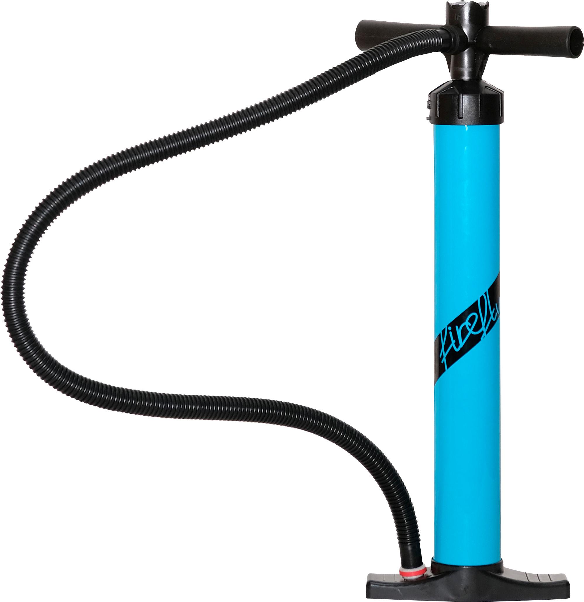 Komfortable Doppelhubpumpe für SUP-Boards; analoge Anzeige des Drucks; ergonomisch geformte Griffe; Schlauch mit Ventil; wahlweise Einfach- oder Doppelhubfunktion; Auf- und Abpumpfunktion; maximaler Druck: 29 PSI; Maße: (L/B): 61 x 11 cm; Gewicht: ca. 900 g.
