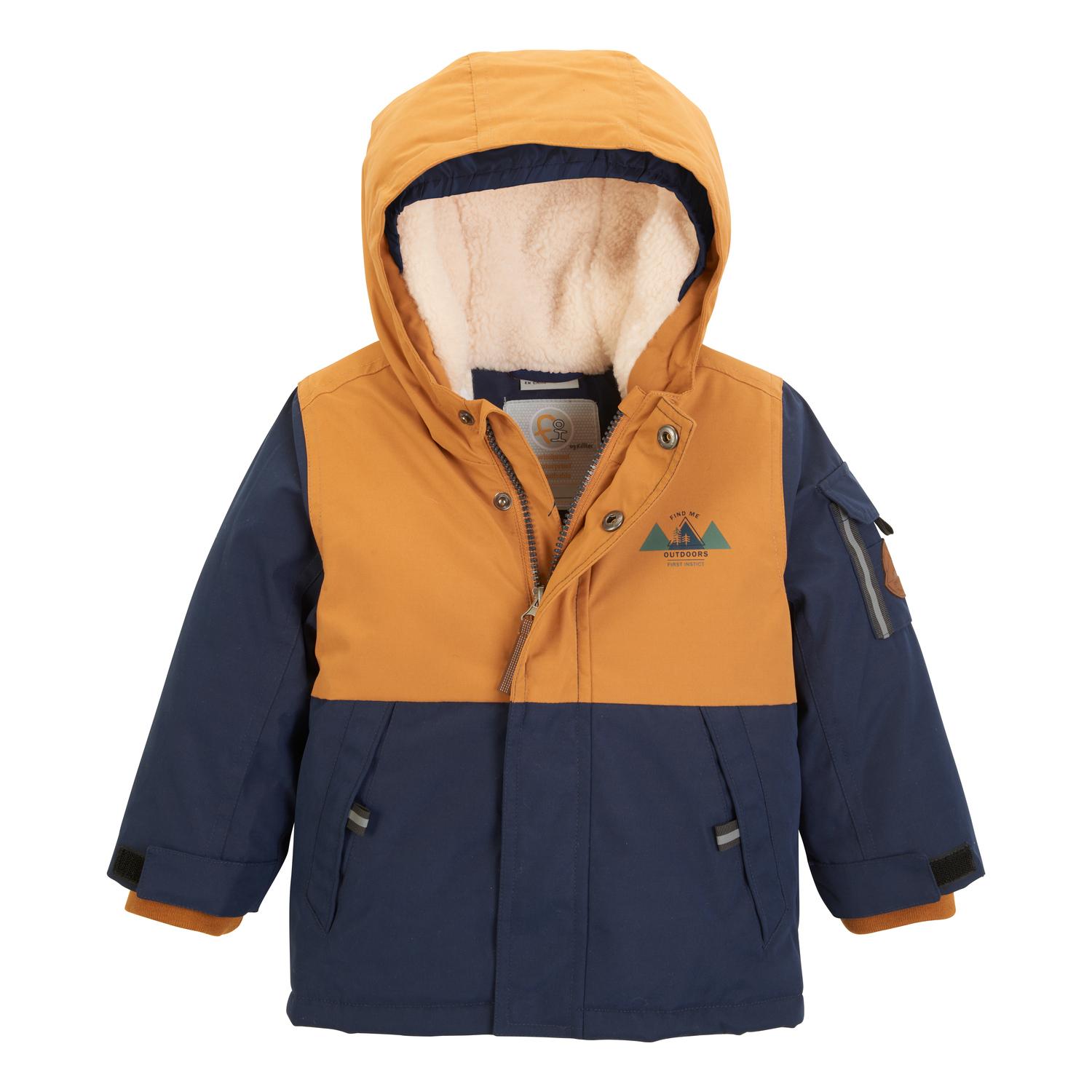 warmer Funktionsparka mit Kapuze für die Kleinsten10.000 mm Wassersäule, verschweißte Nähte, 100% wasserdichtatmungsaktiv (3.000 g/m²/24 h), winddichtverdeckter Reißverschluss mit Kinnschutzbequeme Strickbündchen, drei TaschenColourblock Design, reflektierende ElementePFAs-freie Imprägnierung, gut für dich und die UmweltName: FIOW 49 MNS JCKTSaison: Herbst/WinterDie neue Kollektion von First Instinct by killtec für die Kleinsten zeichnet sich durch cleveres Design und liebevolle Details aus. Mit diesem Funktionsparka in Colourblock Design mit gefütterter Kapuze macht der Winter noch mehr Spaß. Er ist mit einer Wassersäule von 10.000 mm und durch verschweißte Nähte 100% wasserdicht, gleichzeitig ist er atmungsaktiv. Das warme Fleece im Inneren sorgt für kuschelige Wärme. Die verstellbaren Ärmelbüdchen schließen mit elastischen Strickbündchen ab, die das Eindringen von Wind verhindert. Der Zipper ist mit einem Kinnschutz versehen. Der Parka ist außerdem mit drei Taschen, einem dekorativen Brustprint sowie reflektierenden Elementen ausgestattet. Mit dem praktischen, eingenähten Namensetikett zum Beschriften geht der Parka in der Kita nicht so leicht verloren. killtec liegt es besonders am Herzen, die Kollektionen nachhaltiger und zukunftsfähiger zu machen. Dieser Winterparka wurde daher mit fluorfreien Mitteln imprägniert.
