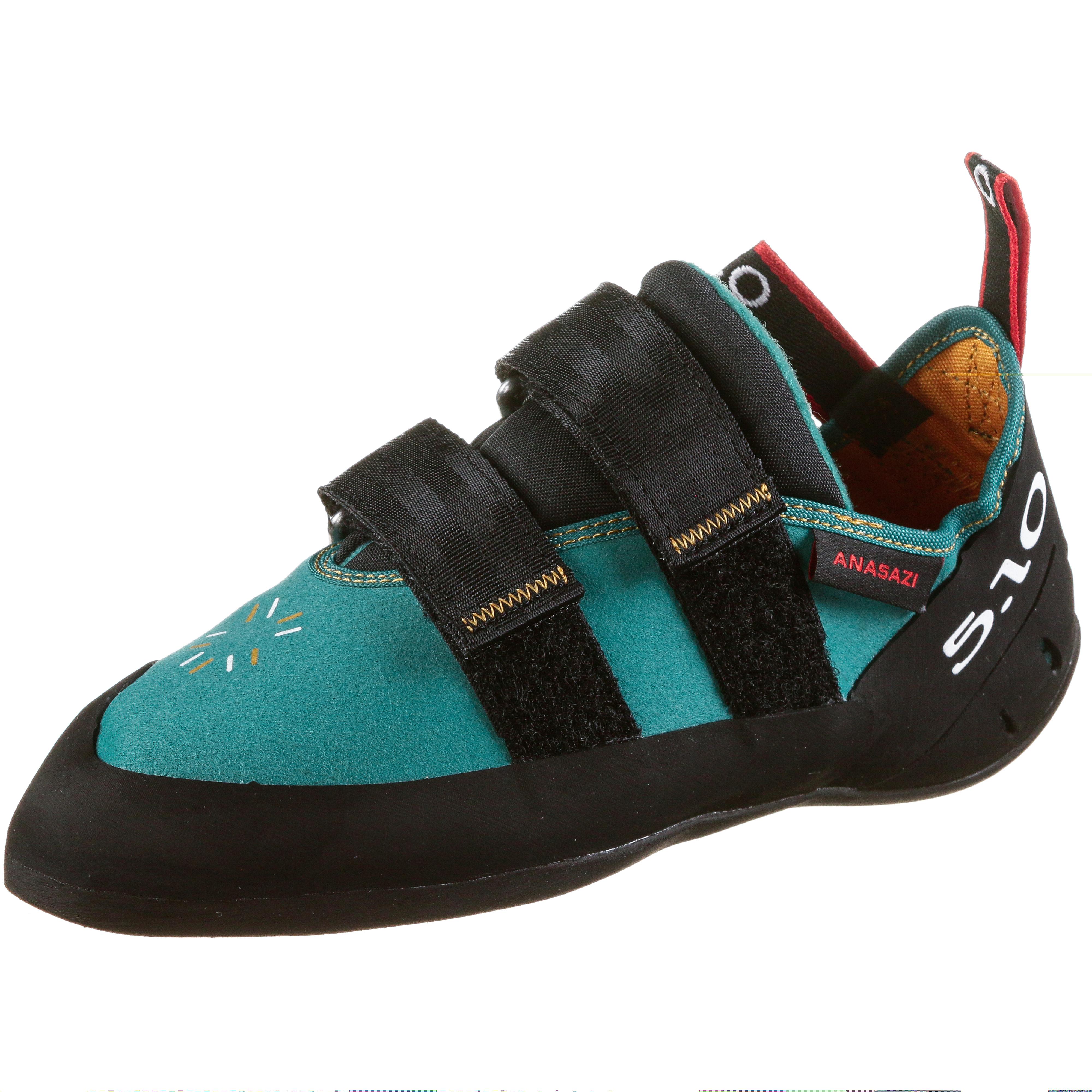 Schmal geschnittene Kletterschuhe mit asymmetrischer Spitzenform; 2 lange und weitenregulierbare Klettverschlüsse; Zuglaschen erleichtern das An- und Ausziehen; Obermaterial aus Synthetik; Innensohle aus atmungsaktivem Textil; äußerst strapazierfähige Stealth® C4 ™ Gummi-Außensohle.