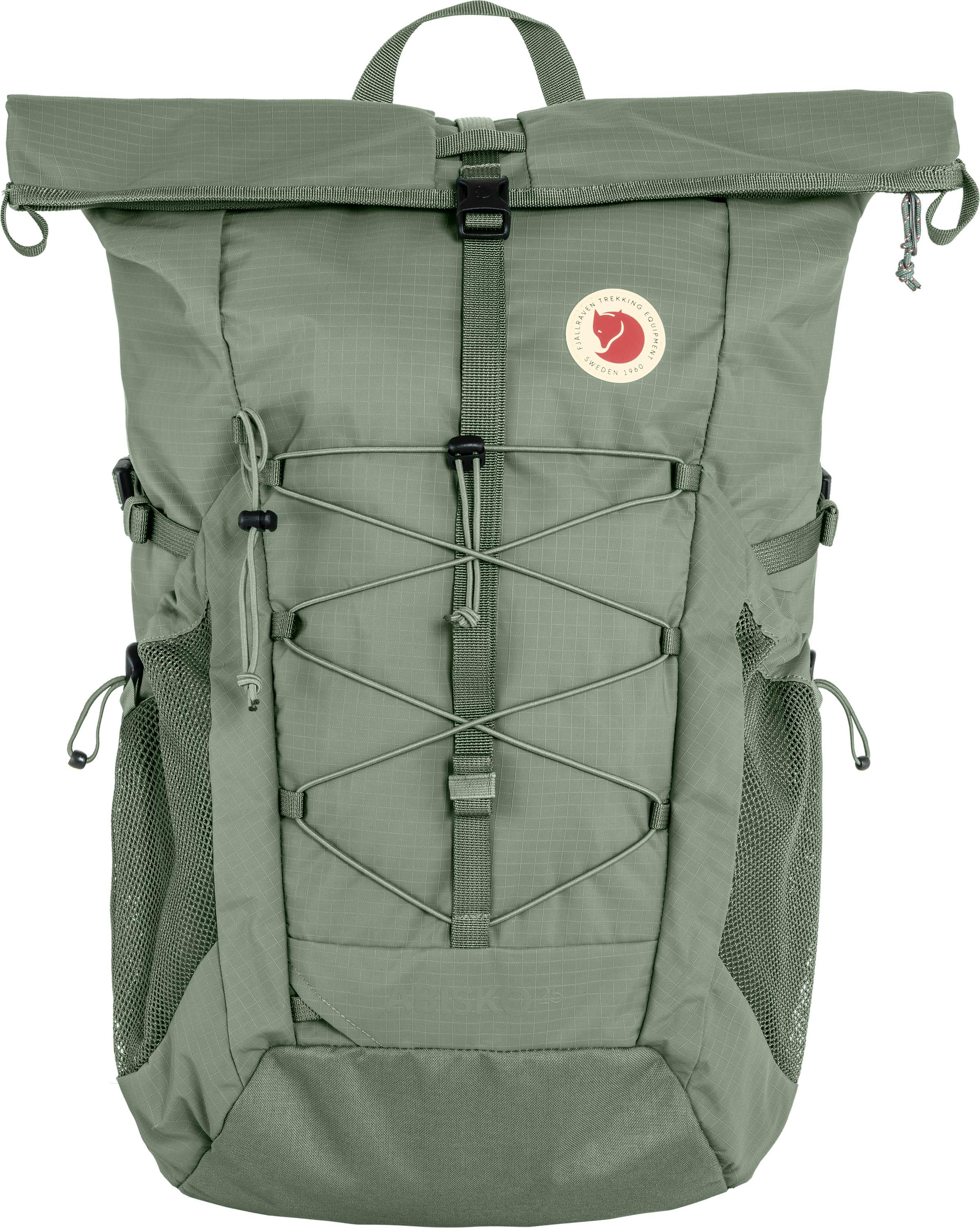 Leichter Daypack aus Ripstop-Material für Tageswanderungen und Reisen; faltbarer Deckel mit Reißverschluss und Plastikschnalle, bietet 4-5 Liter zusätzlichen Stauraum und kann genutzt werden, um z.B. eine Schlafmatte zu befestigen; 1 verdeckte Reißverschlusstasche unter der Faltung; 2 große Seitentaschen aus Mesh mit Tunnelzug und Stopper; 2 Innentaschen; fixiertes Rückenpolstersystem mit Airmesh zur Belüftung; abnehmbarer Brust- und Hüftgurt; seitliche Kompressionsriemen; Befestigung für Wanderstöcke oder Eispickel; Gummizug auf der Vorderseite; vollständig aus Recyclingmaterial hergestellt; ohne PFAS hergestellt; Volumen: 25 l; Maße (H/B/T): ca. 53 x 26 x 20 cm; Gewicht: ca. 900 g; Material 100% Polyamid (recycelt).