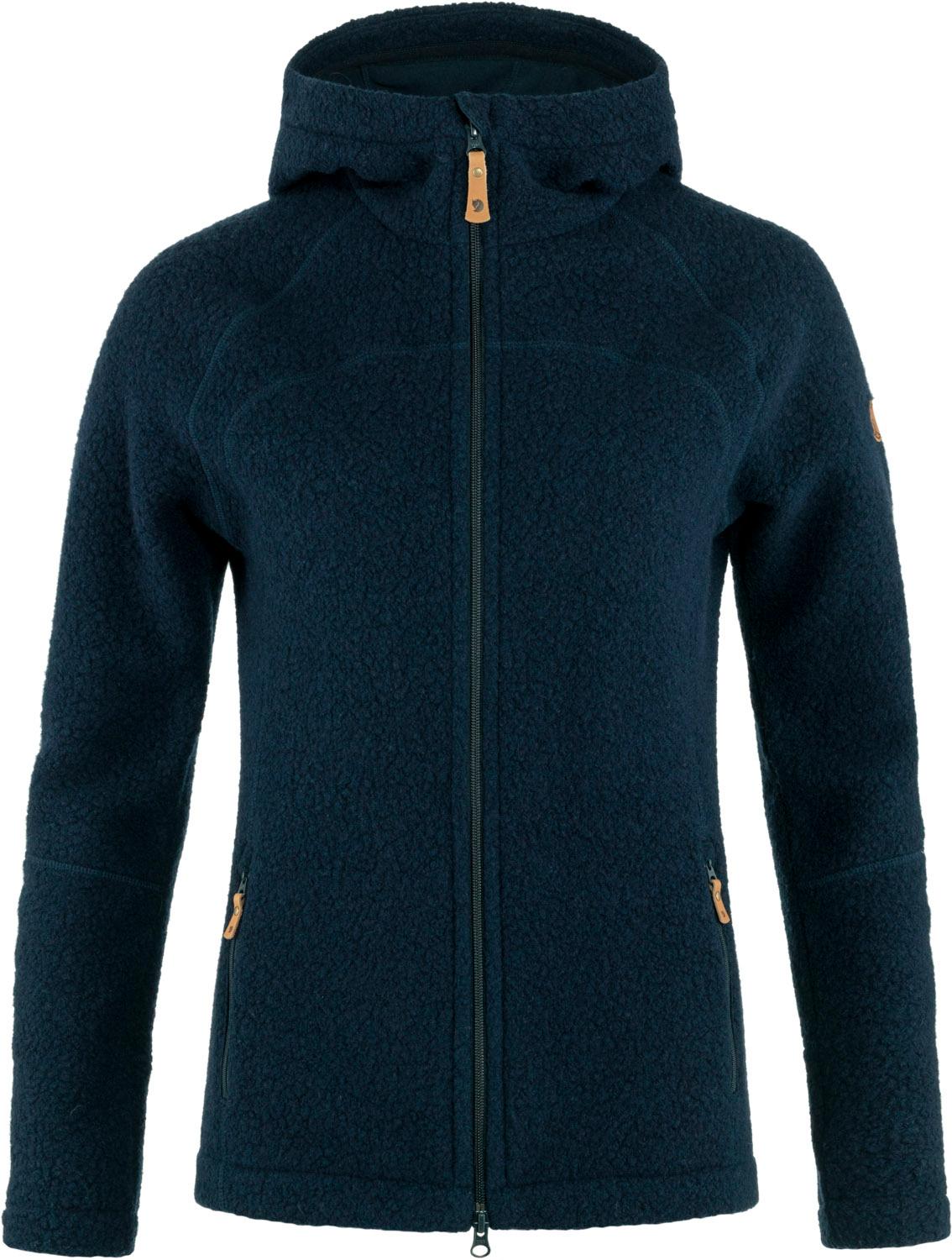 FJÄLLRÄVEN KAITUM. Kapuzen-Fleecejacke aus funktionellem Mischgewebe; Kapuze mit weicher Fleece-Innenseite; 2-Wege-Frontreißverschluss mit Untertritt, 2 RV-Taschen außen und 2 Innentaschen; 65% Wolle, 25% Polyamid, 10% Polyester.