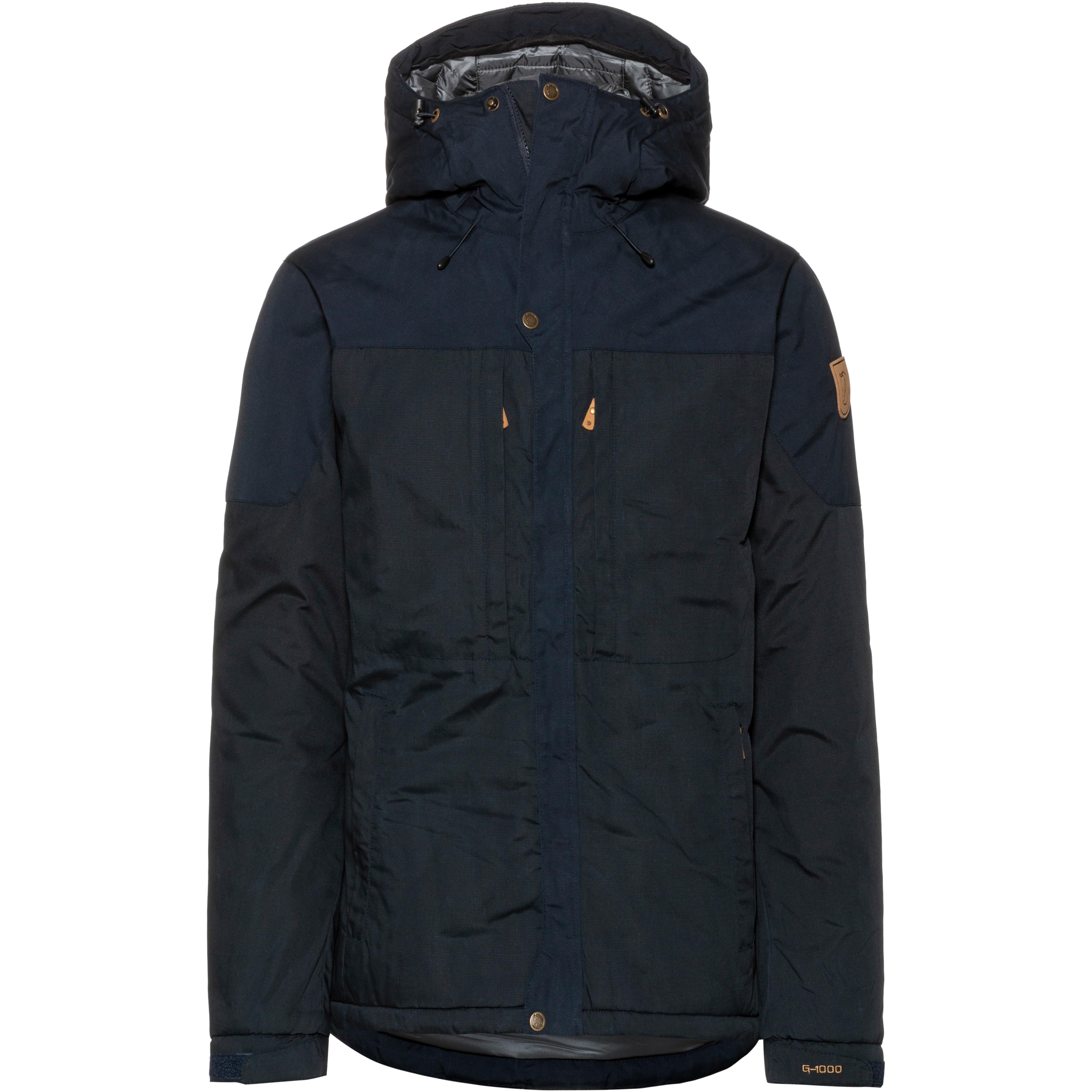 FJÄLLRÄVEN SKOGSÖ. Parka aus robustem G-1000® Lite Gewebe mit wind- und wasserabweisender Beschichtung; G-Loft® Supreme Isolierung; geräumige und verstellbare Kapuze; durchgehender 2-Wege-Frontreißverschluss mit Windschutzblende; vorgeformte Ärmel; 2 Brusttaschen; 2 Seitentaschen mit Reißverschluss; 1 Innentasche mit Reißverschluss; weitenregulierbare Ärmelabschlüsse mit Klettriegel; leicht verlängerter Rückenbereich; Stopper im Saum; Logo-Detail; enthält nichttextile Teile tierischen Ursprungs; Material 65% Polyester, 35% Baumwolle; Isolierung 100% Polyester.