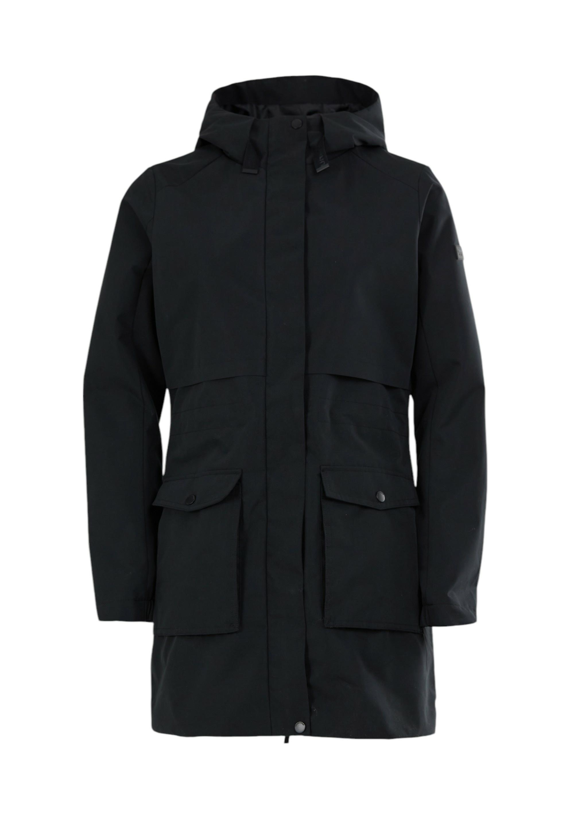 Stilvoller Schutz für den Alltag Die Zhuri Waterproof Jacket Damen-Regenjacke besticht durch elegantes Design und Funktionalität, ideal für regnerisches, windiges Wetter. •Wasserabweisende Beschichtung: Verhindert, dass sich Wassertropfen auf der Oberfläche des Materials festsetzen. •3.000 mm Wasserdichtigkeit: Geeignet für leicht regnerische Wetterbedingungen. •Längerer Regular Fit Schnitt: Bietet Komfort und Bewegungsfreiheit und ermöglicht das Schichten. •Verstellbare Taille: Individuell anpassbarer Sitz für elegantes Aussehen und Schutz vor Wind. •Kapuze mit Kordelzug: Feste Kapuze bietet Schutz vor Wind und Niederschlag. •Abgedeckter Hauptreißverschluss: Zusätzlicher Schutz vor Regen und Wind. •Schmale Manschetten: Verhindern das Eindringen von kalter Luft und ein Hochrutschen der Ärmel. •Reißverschlusstaschen: Praktische Aufbewahrung für kleinere Wertgegenstände.