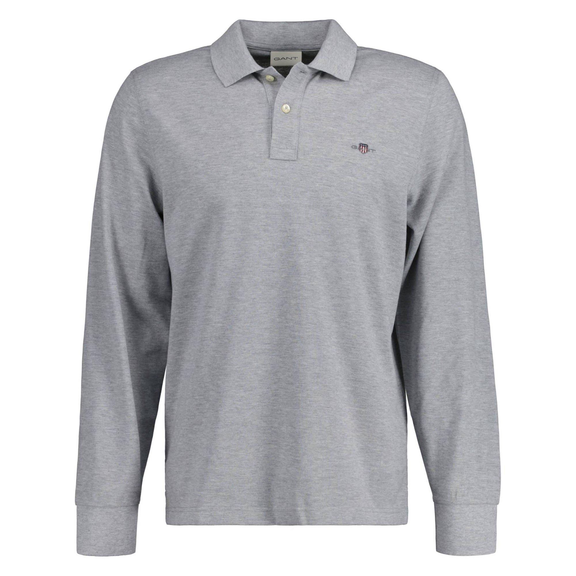 Langarm-Poloshirt für Herren von der Marke GANT. Pique-Struktur aus angenehm weicher Baumwoll-Qualität. Kleine Wappen-Logo-Stickerei auf der Brust.