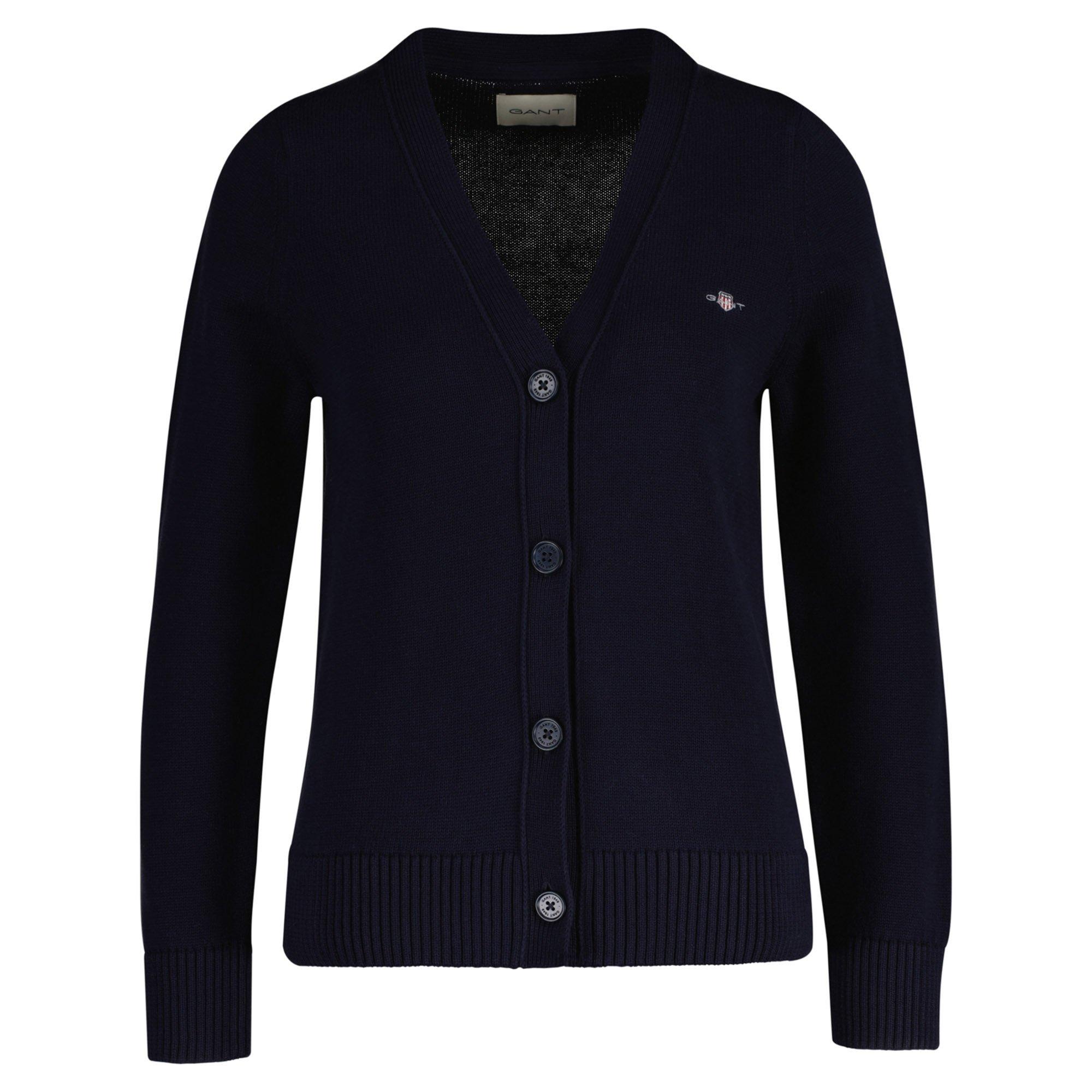 Stylische Cardigan von der Marke GANT. Aus angenehm weicher Bio-Baumwolle, mit kleiner Logo-Stickerei, V-Ausschnitt und Knopfleiste, gerippter Saum und Bündchen.