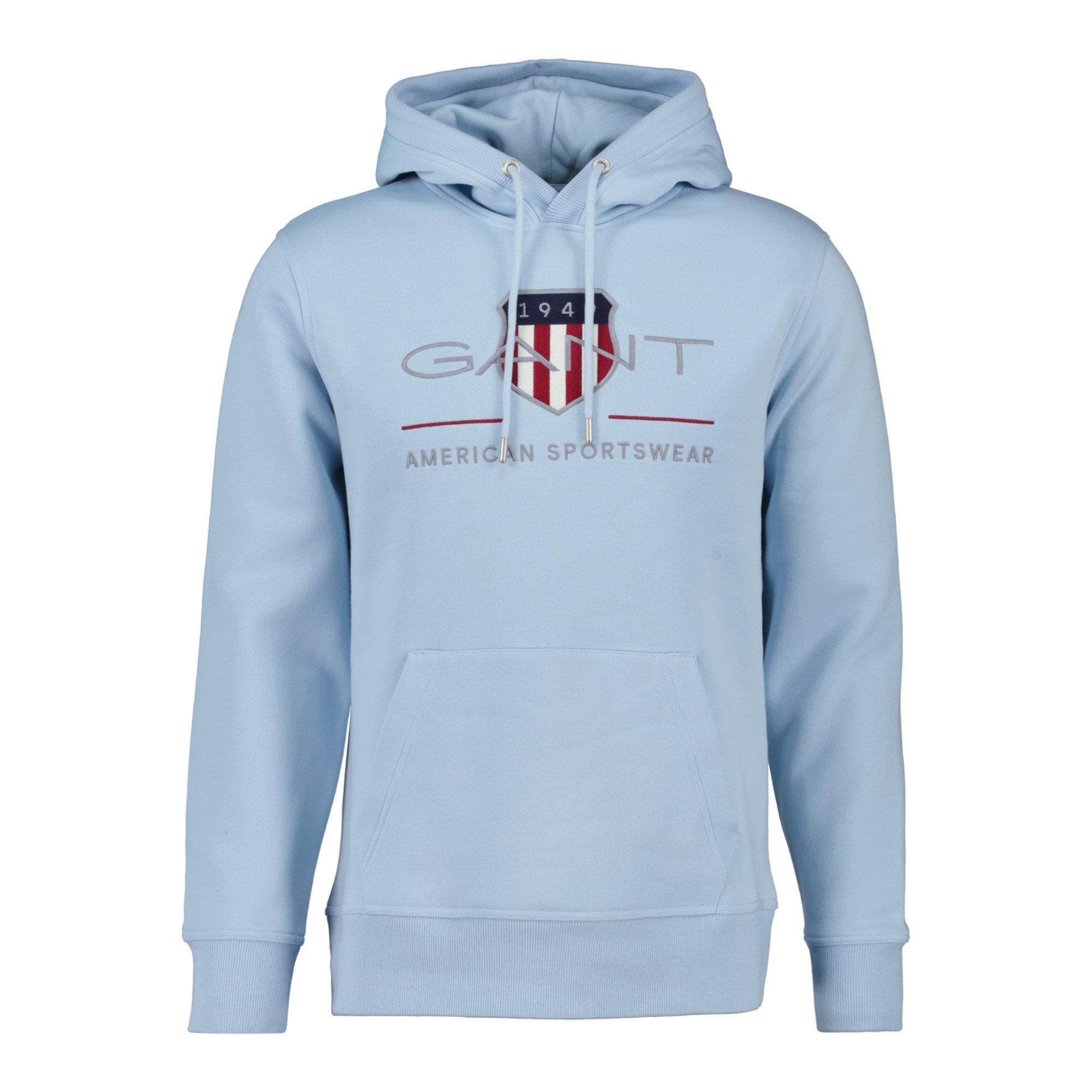 Kapuzen-Sweater für Herren von der Marke GANT. Angenehm weiche Loopback-Jersey-Qualität aus Baumwoll-Mix. GANT Wappen-Stickerei. Mit Kängurutasche.