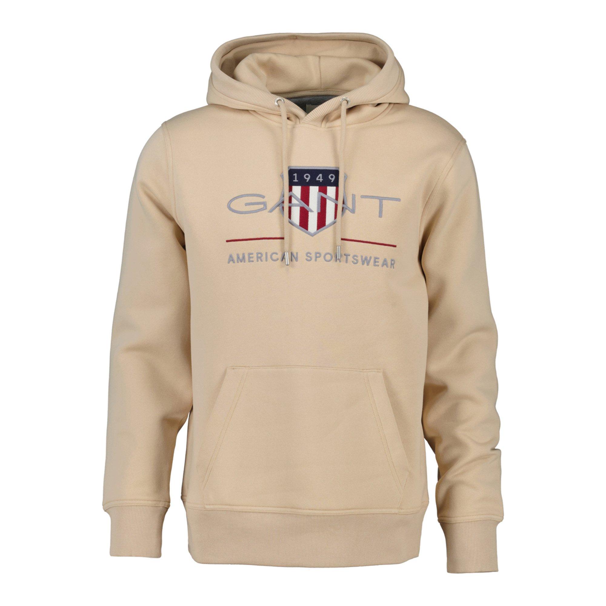 Kapuzen-Sweater für Herren von der Marke GANT. Angenehm weiche Loopback-Jersey-Qualität aus Baumwoll-Mix. GANT Wappen-Stickerei. Mit Kängurutasche.
