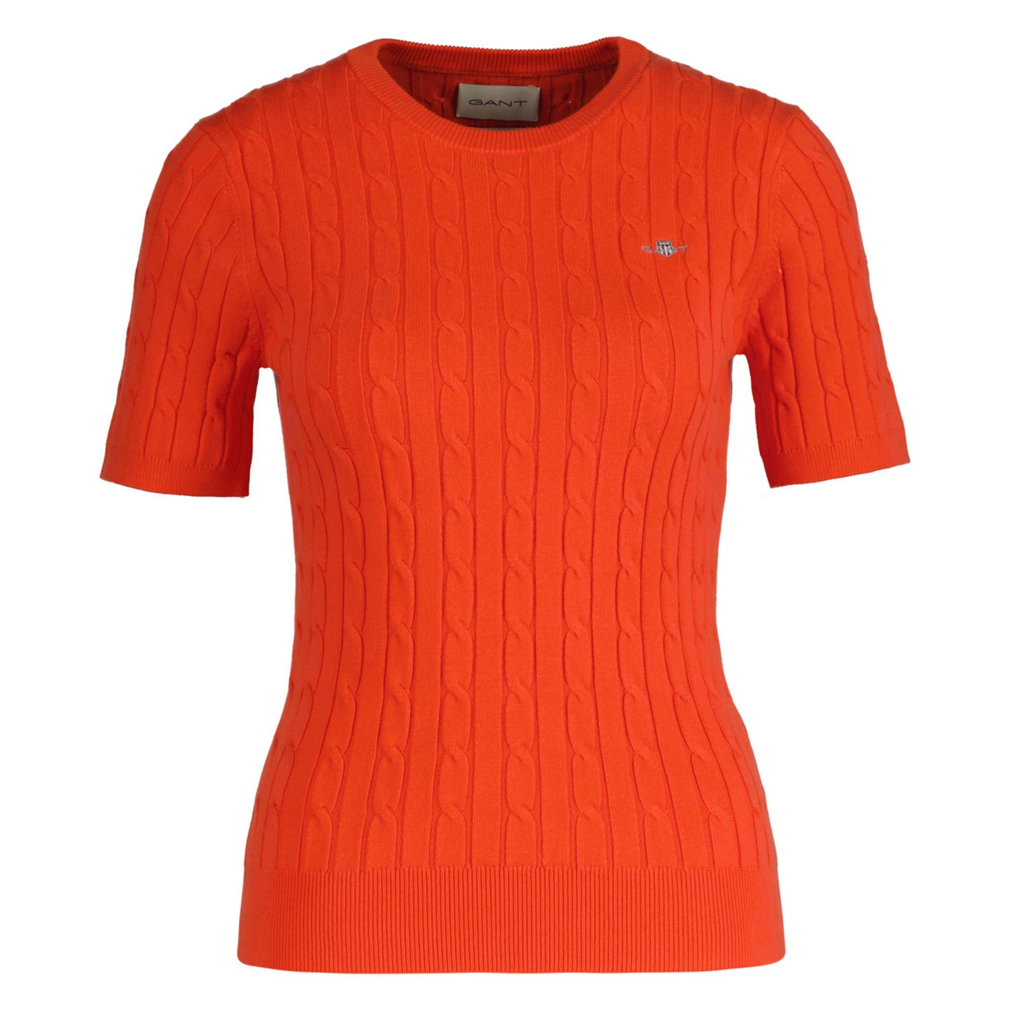 Gestricktes T-Shirt mit Zopfmuster von der Marke GANT. Rundhalsausschnitt und kurze Ärmel, Material-Mix mit hohem Baumwoll-Anteil, kleine Logo-Stickerei.
