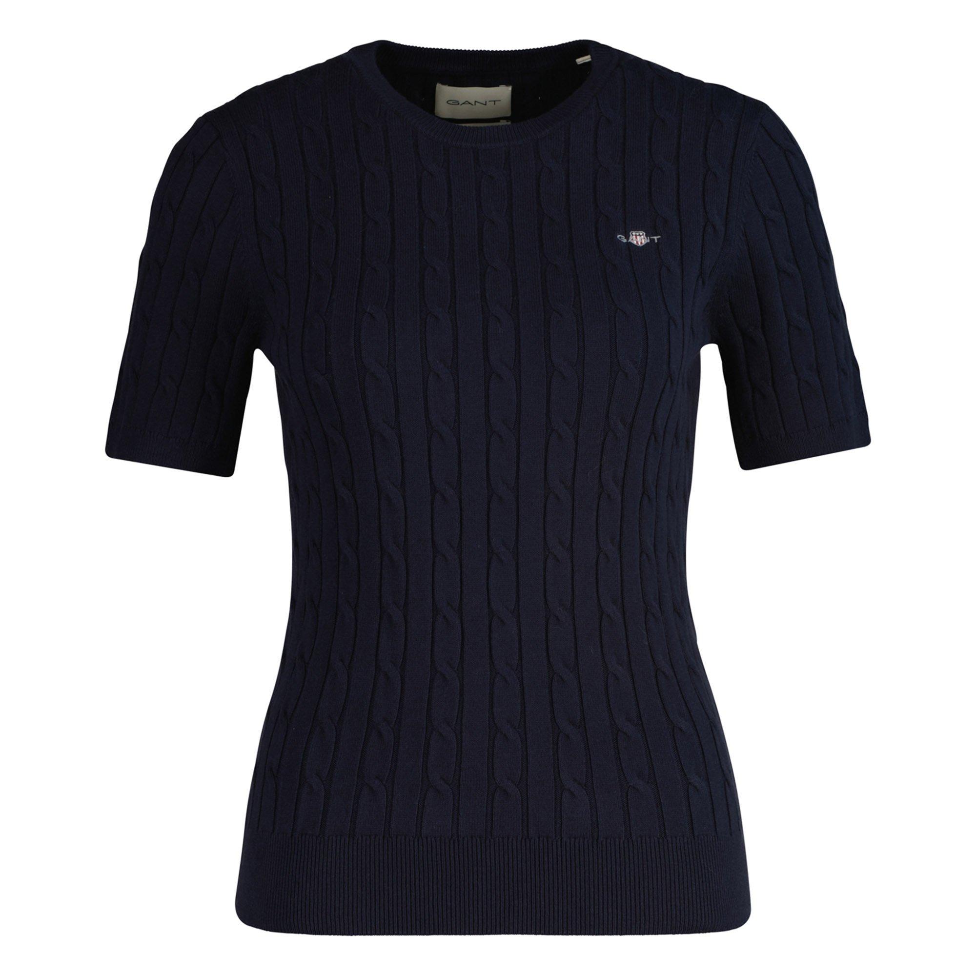 Gestricktes T-Shirt mit Zopfmuster von der Marke GANT. Rundhalsausschnitt und kurze Ärmel, Material-Mix mit hohem Baumwoll-Anteil, kleine Logo-Stickerei.