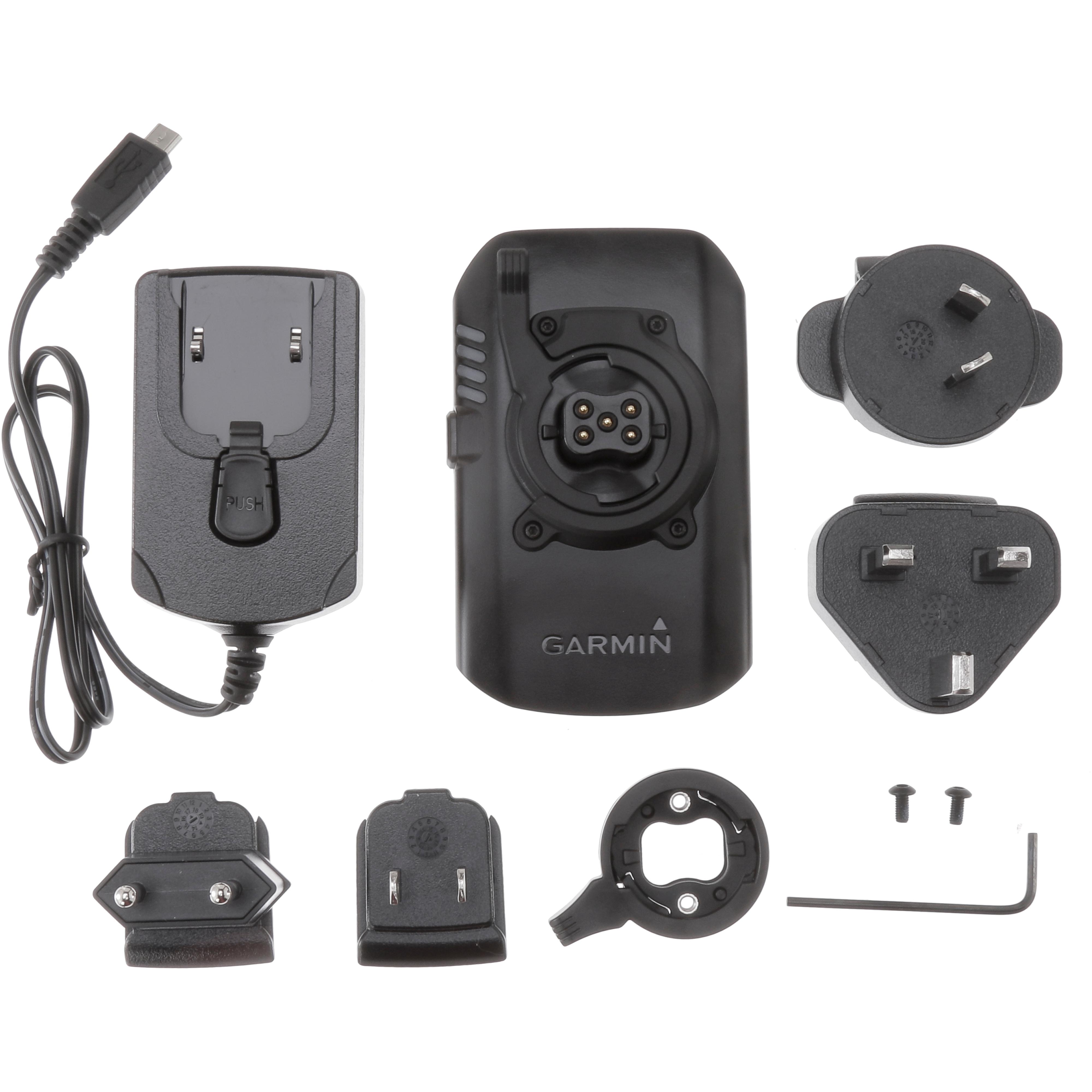 Akkupack mit Zubehör für den Edge® 1030 Fahrradcomputer; verlängert die Akku-Laufzeit um bis zu 24 Stunden; verwendbar mit der Fahrradhalterung „Aero Kombi“ (Artikelnummer 289915); Lithium-Ionen-Akku; 3100mAh bei 5 V; Betriebs- und Lagertemperaturbereich: -20°C bis 60°C; wasserdicht nach IPX7; mit einem zusätzlichen USB-Ladekabel (nicht im Lieferumfang enthalten) können auch andere kompatible Geräte aufgeladen werden; Micro-USB-Buchse; Standard USB-Buchse; Maße Akkupack: ca. 9,5 x 6 x 2,3 cm; Gewicht Akkupack: ca. 132 g; im Lieferumfang enthalten: Hebelschloss inkl. Montagezubehör, Micro-USB Wandladegerät mit verschiedenen internationalen Adaptern, Dokumentation.