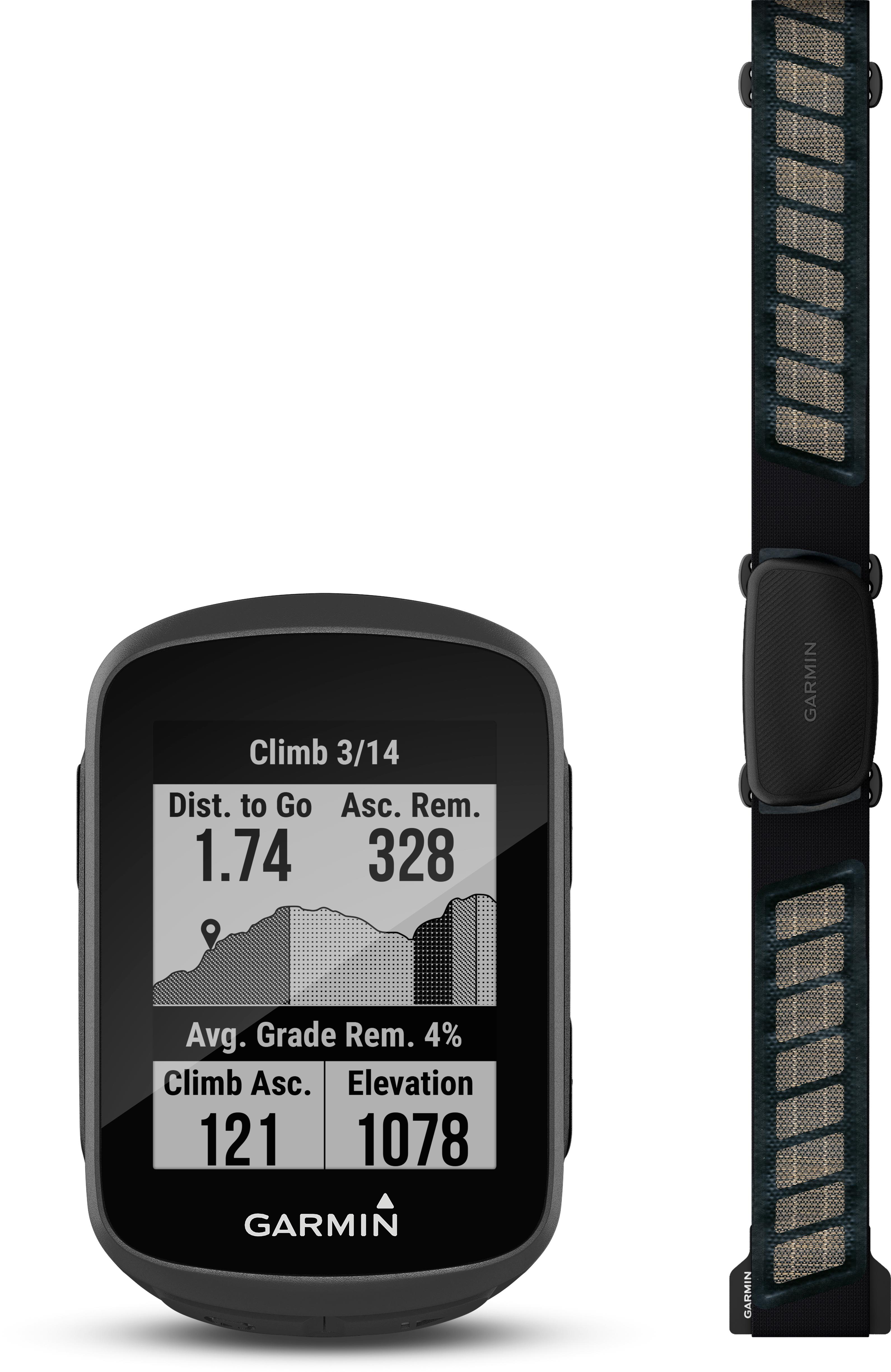 Kleiner Fahrradcomputer mit HRM-Dual™ Brustgurt; 1,8 Zoll-Bildschirm; GPS; GLONASS; GALILEO; Höhenmesser; Beschleunigungsmesser; Bluetooth®- und ANT®+-Konnektivität; Wetteranzeige; Live-Tracking; Kalorienverbrauch; Intervall-Training; herunterladbare Trainingspläne; ClimbPro™-Anstiegsplaner; Zeit- oder Distanz-Alarm; Edge® Fernbedienung; Smartphone Notifications; Notfallhilfe; drahtlose Synchronisierung von Indoor- und Outdoor-Trainings; kompatibel mit Varia-Radar; Touren-Analyse; Wasserdichtigkeit: IPX7; Lithium-Ionen-Akku; Batterielaufzeit: ca. 12 h;Maße: (H/B/T): ca. 63 x 41 x 16 mm; Gewicht: ca. 33 g; im Lieferumfang enthalten: Standardhalterung, USB-Kabel; Befestigungsband; Handbücher.