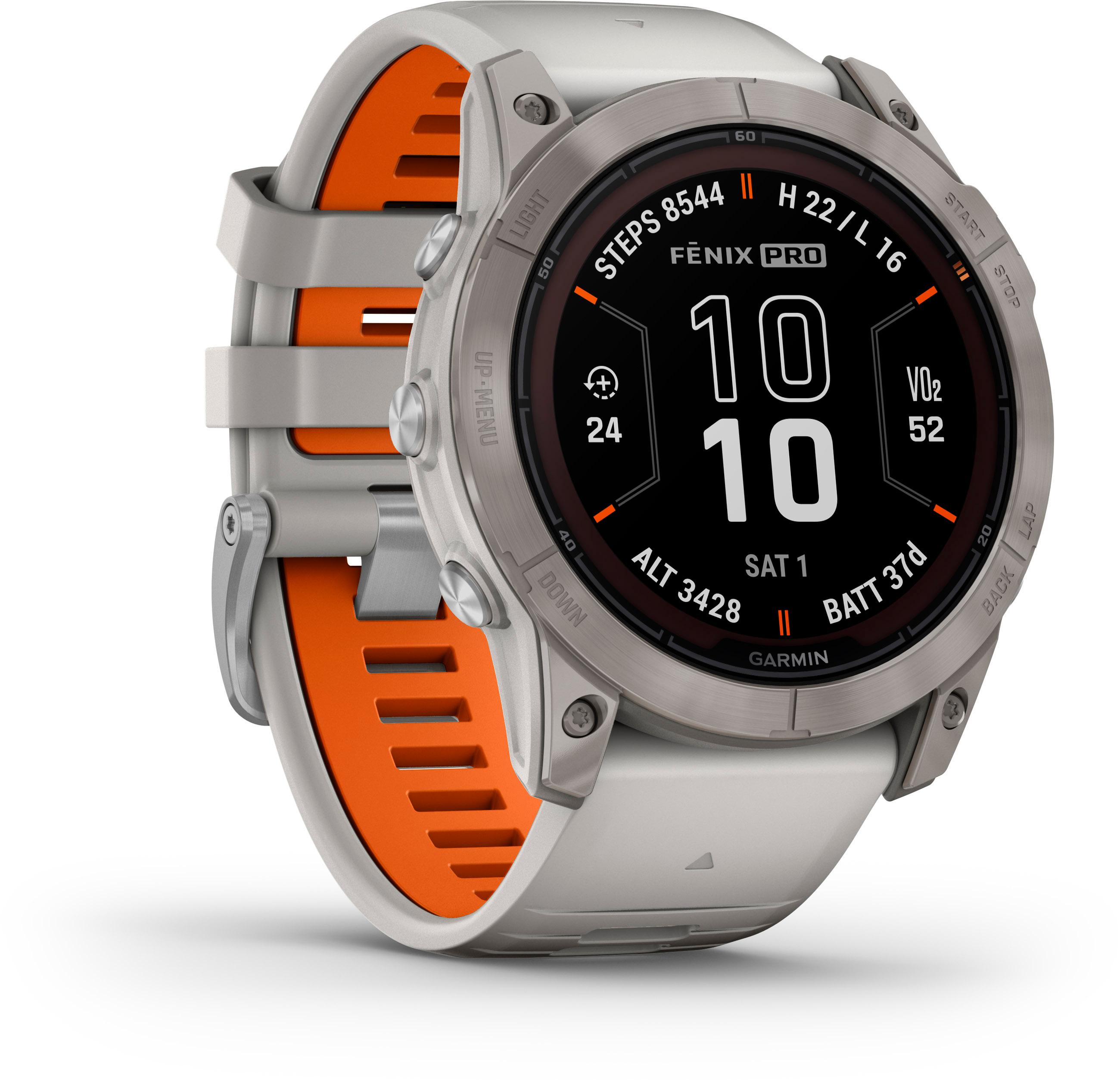 Die Garmin Fenix 7X Pro Saphir Solar ist die ultimative GPS-Multisport-Smartwatch für Abenteurer, die keine Kompromisse eingehen wollen. Mit ihrem großzügigen 51-mm-Gehäuse aus Titan und dem kratzfesten Power Sapphire™-Glas bietet sie maximale Robustheit und ein elegantes, funktionales Design. Dank der innovativen Solar-Ladelinse erreicht die Uhr beeindruckende Akkulaufzeiten von bis zu 37 Tagen im Smartwatch-Modus und 122 Stunden im GPS-Modus – für lange Expeditionen und ausgedehnte Trainingseinheiten. Das transflektive 1,4-Zoll-MIP-Display sorgt in jeder Umgebung für optimale Ablesbarkeit. Du kannst die Uhr sowohl über das Touchdisplay als auch über Tasten bedienen, was eine intuitive Steuerung unter allen Bedingungen ermöglicht. Zu den herausragenden Features gehört die integrierte LED-Taschenlampe mit verschiedenen Intensitätsstufen und rotem Sicherheitslicht – ein unverzichtbares Tool bei nächtlichen Abenteuern oder schlechten Lichtverhältnissen. Für deine Fitness und Gesundheit bietet die Fenix 7X Pro erweiterte Funktionen wie den Morning Report, der dir gleich morgens einen Überblick über Schlafqualität, Trainingsbereitschaft und Wetter gibt. Die Trainingsbereitschaftsfunktion kombiniert Gesundheitsdaten wie Erholung, Schlaf und Stress, um dir individuelle Empfehlungen für den Tag zu geben. Mit über 80 vorinstallierten Sport- und Outdoor-Apps, darunter Trailrunning, Schwimmen, Skitouren und Radfahren, sowie Funktionen wie PacePro™, ClimbPro™ und Hill Score kannst du dein Training noch gezielter steuern. Die Stamina-Restenergie-Anzeige und die Analyse physiologischer Messwerte helfen dir, deine Ressourcen optimal zu nutzen und deine Leistung kontinuierlich zu verbessern. Die Uhr verfügt über vorinstallierte TopoActive-Karten, präzise Multi-Frequenz-Satellitennavigation und vielfältige Sicherheitsfunktionen wie Unfallbenachrichtigungen. Mit einer Speicherkapazität von 32 GB kannst du außerdem Musik offline speichern und direkt über die Uhr abspielen, während Garmin Pay™ dir kontaktloses Bezahlen ermöglicht. Die Fenix 7X Pro misst 51 x 51 x 14,9 mm, wiegt 89 g und ist bis 10 ATM wasserdicht, was sie ideal für alle Aktivitäten macht – von Wassersport bis Bergsteigen. Zum Lieferumfang gehören ein QuickFit®-Silikon-Armband, ein USB-C-Lade-/Datenkabel und eine umfassende Dokumentation. Die Garmin Fenix 7X Pro Saphir Solar ist der Begleiter für alle, die sich anspruchsvollen Herausforderungen stellen und das Beste aus jeder Situation herausholen wollen.