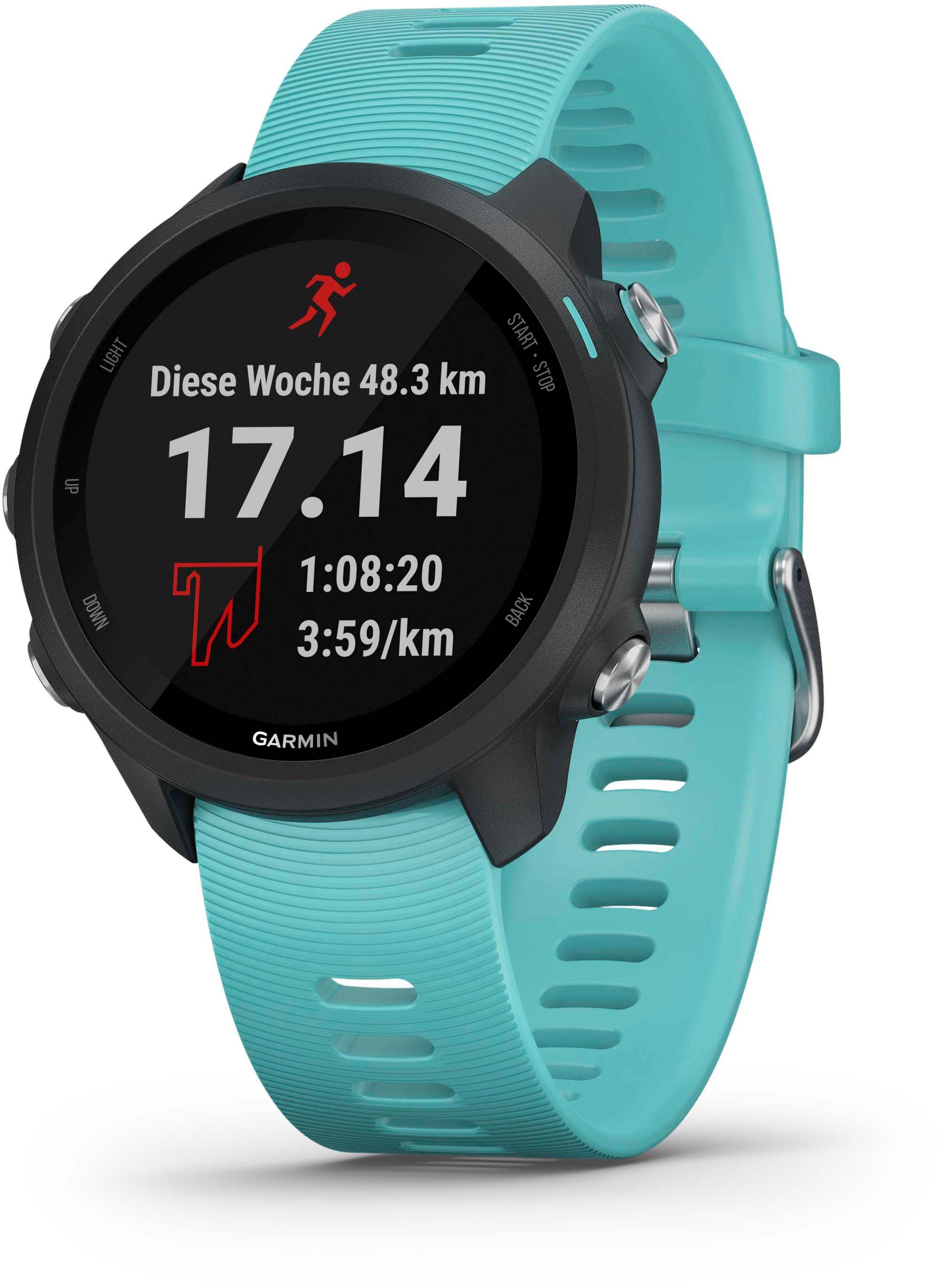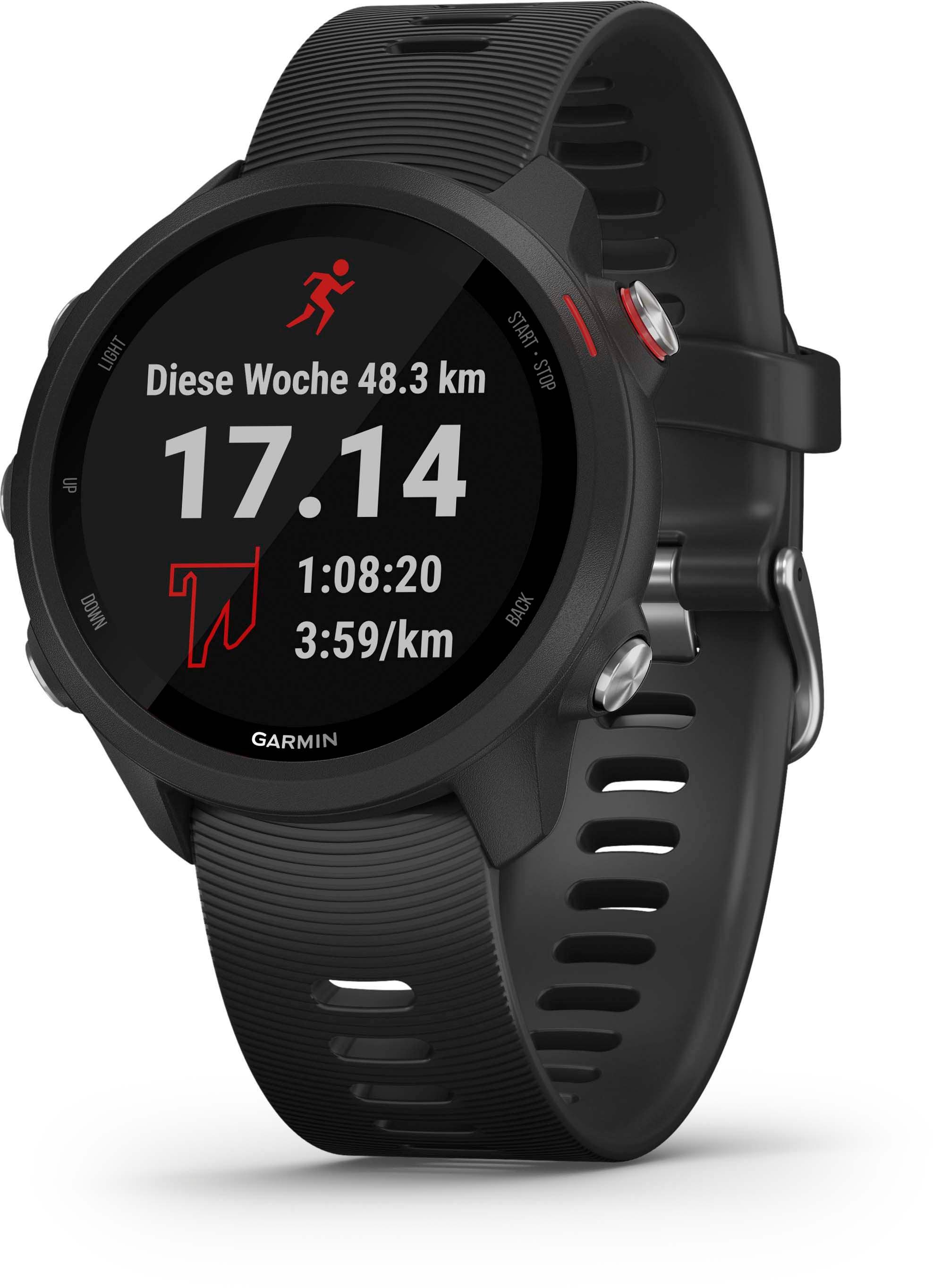 Nutze Sicherheits- und Trackingfunktionen, wie beispielsweise eine integrierte Unfall-Benachrichtigung zum problemlosen Teilen der aktuellen Position. Anpassung mit kostenlosen Displaydesigns, Apps und mehr im Garmin Connect IQ™ Store. Smart Notifications, WLAN, ANT+, BLE, LiveTrack, Connect IQ, Unfall Benachrichtigung und mehr. Batterielaufzeit bis zu 7 Tage im Smartwatch-Modus. Bis zu 6 Stunden im GPS-Modus mit Musik plus Ultratrac-Modus für längere Läufe.