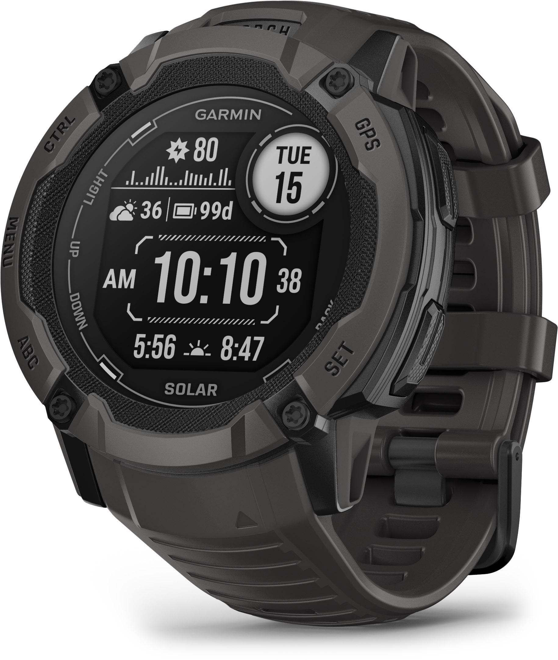 Robuste Multisport-Smartwatch mit innovativer Solartechnik für eine ultralange Akkulaufzeit im Smartwatch-Modus; transreflektives MIP-Display; Linse aus Power Glass™; taktische Funktionen, wie Kompatibilität mit Nachtsichtbrillen, Jumpmaster oder Tarnmodus, der die drahtlose Kommunikation und den Datenaustausch deaktiviert und die GPS-Positionen nicht speichert; helles 1,1 Zoll Solar-Display; 50 mm Gehäuse erfüllt militärische Standards und ist bis zu 10 ATM wasserdicht; integrierte LED-Taschenlampe; intelligenter Lichtmodus bringt mehr Sicherheit beim Laufen in der Nacht; mehr als 70 Sport- und Outdoor-Apps vom Laufen, Mountainbiken, Schwimmen, Triathlon, Skifahren oder Golfen bis hin zu Indoor-Trainer, Krafttraining, Yoga oder Pilates; Herzfrequenzmessung am Handgelenk; Pulse Ox Messung; Stresslevel; Atemfrequenz; Frauengesundheit; 3-Achsenkompass; Höhenmesser; TracBack™; Schlafananlyse; Notfallhilfe und automatische Unfallbenachrichtigung; beste Orientierung durch Multi-Frequenz Empfang, Strecken und Tracknavigation, Höhenmesser und Kompass; Erhalten von Benachrichtigungen auf die Smartwatch; kontaktloses Bezahlen mit Garmin Pay; kompatibel mit iOS und Android; Bluetooth und ANT+; 26 mm Wechselarmband aus Silikon; ideal für breitere Handgelenke; Lithium-Ion-Akku; 64 MB interner Speicher; Akkulaufzeit 40 Tage (Smartwatch), 60/145 Stunden (GPS), 150 Stunden (Max Battery GPS Modus), 60 Tage (GPS-Expeditionsmodus), unendlich (Batteriespar-Modus); Maße: ca. 50 x 50 x 14,5 mm; Gewicht: ca. 67 g; im Lieferumfang enthalten: Lade-/Datenkabel, Dokumentation.