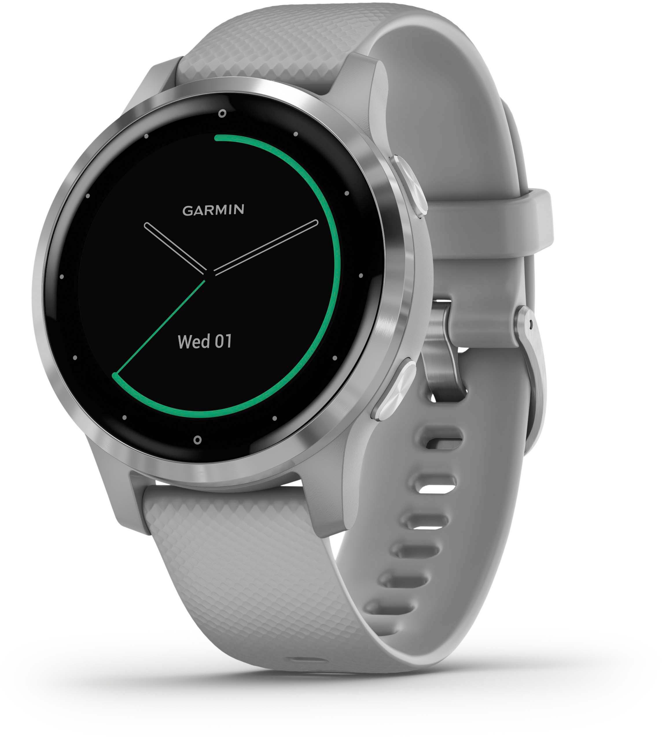 Fitness Tracker mit GPS (Sicherheits- und Trackingfunktion); effizientes Chorma Touchdisplay; diverse Tracker wie für den Menstruationszyklus, des Schlafes, Atemfrequenz, Wasserkonsum, Trainingsbelastung oder das Stress-Level; Messung des Energielevels durch die Body Batterieanzeige; misst die Herzfrequenz direkt am Handgelenk; Pulse Ox Sensor1 zur Ermittlung der Sauerstoffsättigung im Blut; das herunterladen von Musik auf die Uhr über verschiedene Streaming-Dienste ist möglich (bis zu 500 Titel Musikspeicher); 40 Trainingspläne mit verschiedenen Schwierigkeitsstufen aus 36 Sportarten sind vorinstalliert; Garmin Pay™-Bezahlungssystem; das erhalten von Email oder SMS mit Kopplung an ein Smartphone möglich; technische Details: Corning® Gorilla® Glass 3- Uhrenglas; 18 mm Quick Release Band aus Silikon (für einen Handgelenkumfang von 110 bis 175 mm ); Maße: ca. 40 x 40 x 12,7 mm; Anzeigegröße: ca. 27.9 mm Durchmesser; Anzeigeauflösung: ca. 218 x 218 Pixel; Gewicht: ca. 40 g; Akkulaufzeit bis zu 7 Tage, mit GPS und/oder Musik bis zu 5 Std.; Konnektivität: Bluetooth®, ANT+®, WLAN; Wasserdichtigkeit 5 ATM; Speicherkapazität: 7 Aktivitäten mit Zeitangaben und Aktivitätsdaten von 14 Tagen; Smartphone-Kompatibilität: iPhone®, Android™; Lieferumfang: Uhr und Ladekabel.