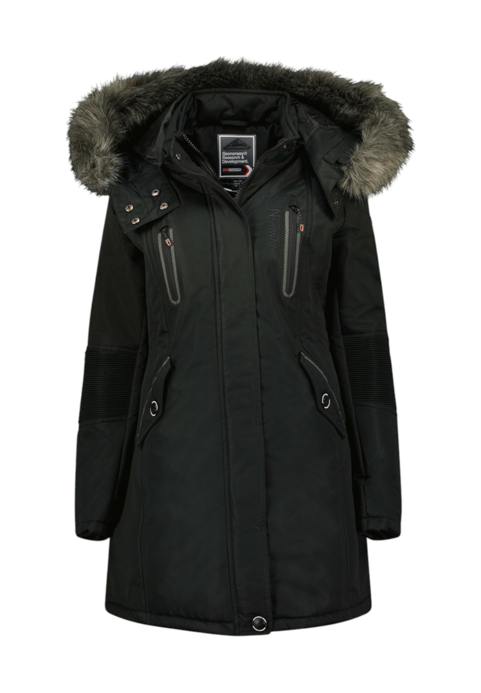 Dieser Parka überzeugt mit abnehmbarer Kapuze, Taillengürtel für eine feminine Silhouette sowie einem praktischen Verschluss aus Reißverschluss und Druckknöpfen – ideal für kühle Tage.
