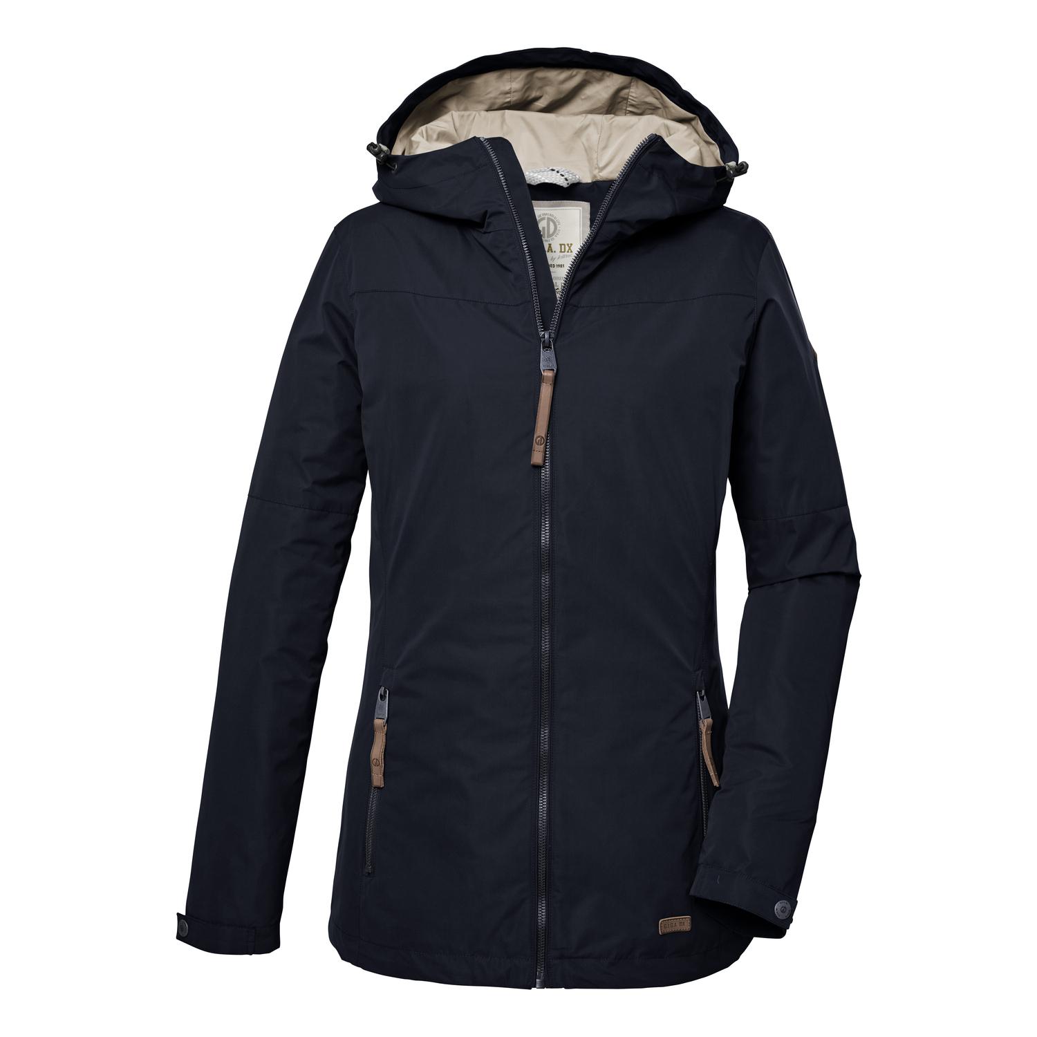Damen Funktionsjacke mit Kapuzewinddicht & wasserabweisend, 8.000 mm WassersäulePFAs-freie Imprägnierung, gut für dich und die Umweltverstellbare ÄrmelbündchenName: GS 18 WMN JCKTSaison: Frühjahr/SommerMit der zeitlosen Funktionsjacke von G.I.G.A DX ist man im Alltag bestens gerüstet. Die weitenregulierbare Kapuze und der wasserabweisende Oberstoff mit einer 8.000 mm Wassersäule sorgen für optimalen Wetterschutz. Die Ärmelbündchen lassen sich durch Druckknöpfe verstellen. Der 2-Wege-Reißverschluss ist mit einem praktischen Kinnschutz versehen. Seitliche Eingrifftaschen mit Zippern und eine Handytasche im Inneren sorgen für ausreichend Stauraum. killtec ist ständig bestrebt, die Kollektionen nachhaltiger und zukunftsfähiger zu machen. So setzt killtec verstärkt auf verantwortungsbewusstere Herstellungsverfahren. Diese Jacke wurde daher mit fluorfreien Mitteln imprägniert.
