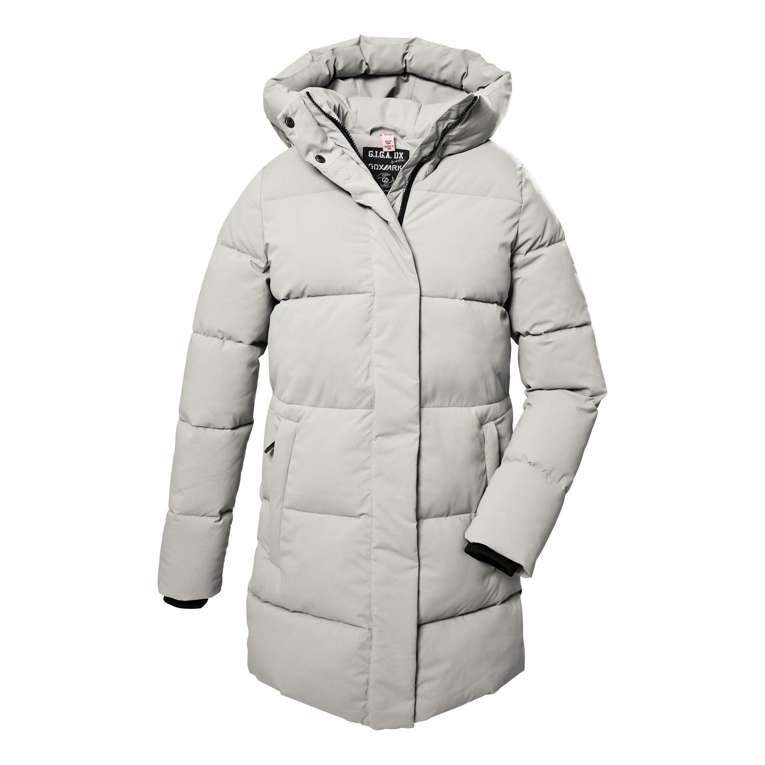 gefütterter Damen Steppparka mit regulierbarer Kapuzewasserabweisend, Wassersäule 10.000 mm, winddichtatmungsaktiv, Wasserdampfdurchlässigkeit 5.000 g/m²/24 hverdeckter 2-Wege-Zipper mit Kinnschutz, StrickbündchenPFAs-freie Imprägnierung, teilweise recyceltes MaterialName: GW 1 WMN QLTD PRKSaison: Herbst/WinterDer gefütterte G.I.G.A DX Damen Steppparka aus unserer Protection-Kollektion besticht durch seine Kombination aus Funktion und lässigem Casual Style. Er ist winddicht und wasserabweisend mit einer 10.000 mm Wassersäule. Gleichzeitig ist der Parka atmungsaktiv mit einer Wasserdampfdurchlässigkeit von 5.000 g/m²/24 h. Die Kapuze lässt sich durch einen Kordelzug regulieren. Die bequemen Strickbündchen an den verstellbaren Ärmelabschlüssen verhindern das Eindringen von Wind und Kälte. Der verdeckte 2-Wege-Zipper lässt sich von oben und unten öffnen und sorgt so für Bewegungsfreiheit. Zwei Zippertaschen und eine Innentasche bieten Platz für Handy, Schlüssel und Co. killtec liegt es besonders am Herzen, die Kollektionen nachhaltiger und zukunftsfähiger zu machen. So setzt killtec verstärkt auf verantwortungsbewusstere Herstellungsverfahren. Dieser Winterparka wurde daher mit fluorfreien Mitteln imprägniert und wurde teilweise aus recyceltem Material hergestellt.