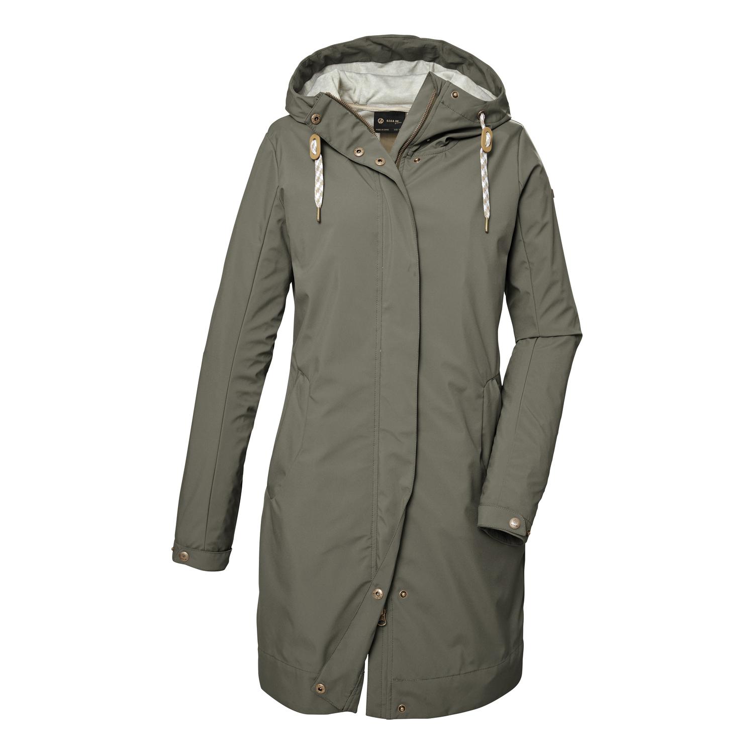 Softshell Parka mit Kapuzewasserabweisend, Wassersäule 8.000 mmPFAs-freie Imprägnierung, gut für dich und die Umwelt2-Wege-Reißverschluss mit KinnschutzSaum und Ärmelbündchen verstellbardrei TaschenName: GS 16 WMN SFTSHLL PRKSaison: Frühjahr/SommerDer Damen Softshell Parka mit Kapuze von G.I.G.A. DX ist perfekt für die Übergangszeit und kühle Sommertage. Er schützt mit einer 8.000 mm Wassersäule vor Wind und Regen und ist gleichzeitlich atmungsaktiv. Die Jacke hat zwei Seitentaschen sowie eine Handytasche im Inneren. Der Saum und die Ärmelbündchen sind verstellbar. Der 2-Wege-Reißverschluss lässt sich von oben und unten öffnen und sorgt für Bewegungsfreiheit. Optisch besticht der Parka durch seinen Casual-Look, den langen Schnitt und den verdeckten Reißverschluss. killtec ist ständig bestrebt, die Kollektionen nachhaltiger und zukunftsfähiger zu machen. So setzt killtec verstärkt auf verantwortungsbewusstere Herstellungsverfahren. Dieser Parka wurde daher mit fluorfreien Mitteln imprägniert und wurde aus recycelten Materialien hergestellt.