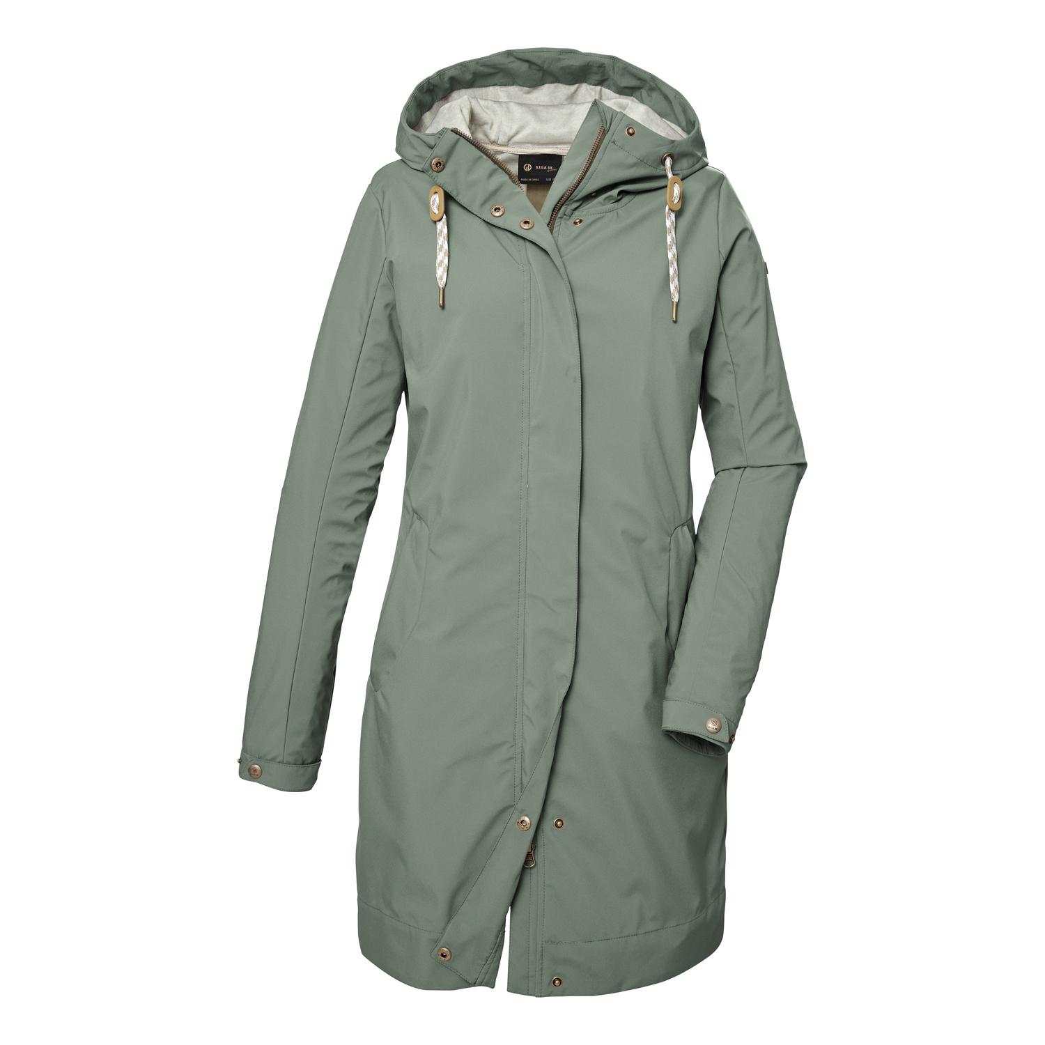 Softshell Parka mit Kapuzewasserabweisend, Wassersäule 8.000 mmPFAs-freie Imprägnierung, gut für dich und die Umwelt2-Wege-Reißverschluss mit KinnschutzSaum und Ärmelbündchen verstellbardrei TaschenName: GS 16 WMN SFTSHLL PRKSaison: Frühjahr/SommerDer Damen Softshell Parka mit Kapuze von G.I.G.A. DX ist perfekt für die Übergangszeit und kühle Sommertage. Er schützt mit einer 8.000 mm Wassersäule vor Wind und Regen und ist gleichzeitlich atmungsaktiv. Die Jacke hat zwei Seitentaschen sowie eine Handytasche im Inneren. Der Saum und die Ärmelbündchen sind verstellbar. Der 2-Wege-Reißverschluss lässt sich von oben und unten öffnen und sorgt für Bewegungsfreiheit. Optisch besticht der Parka durch seinen Casual-Look, den langen Schnitt und den verdeckten Reißverschluss. killtec ist ständig bestrebt, die Kollektionen nachhaltiger und zukunftsfähiger zu machen. So setzt killtec verstärkt auf verantwortungsbewusstere Herstellungsverfahren. Dieser Parka wurde daher mit fluorfreien Mitteln imprägniert und wurde aus recycelten Materialien hergestellt.