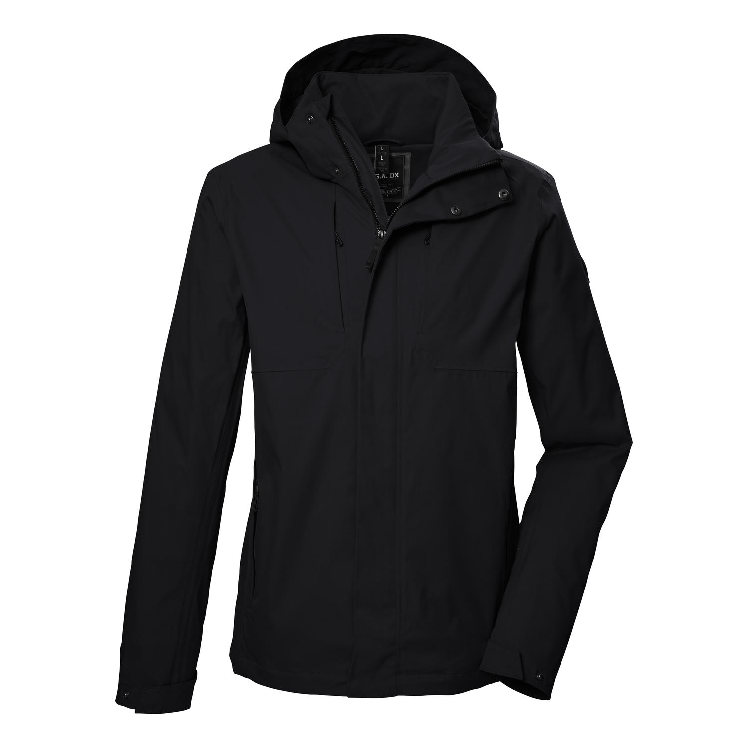 Herren Funktionsjacke mit verstellbarer Kapuze 10.000 mm Wassersäule, verschweißte Nähte, wasserdicht atmungsaktiv (5.000 g/m²/24 h) und winddicht PFAs-freie Imprägnierung und aus recyceltem Material Ärmelabschlüsse und Saum verstellbar, Zipper mit Kinnschutz vier Zippertaschen, Handytasche im Inneren leichtes Mesh-Futter innen Name: GS 59 MN JCKT Saison: Frühjahr/Sommer Die Herren Funktionsjacke aus der G.I.G.A. DX Protection-Kollektion hält widrigem Wetter stand und zeichnet sich gleichzeitig durch ihren urbanen Look aus. Die Jacke hat verschweißte Nähte und ist wasser- und winddicht mit einer 10.000 mm Wassersäule (Unser Tipp: ab und zu sollte die Jacke neu imprägniert werden). Dabei ist sie atmungsaktiv mit einer Wasserdampfdurchlässigkeit von 5.000 g/m²/24 h. Das Innenfutter besteht aus einem leichten Mesh-Einsatz. Die Ärmelabschlüsse und der Saum sind regulierbar. Die Kapuze mit Schirm ist verstellbar und bei Bedarf komplett abzippbar. Die Jacke ist mit zwei seitlichen Taschen, zwei Brusttaschen und einer Innentasche ausgestattet. Der verdeckte Frontreißverschluss ist mit einem Kinnschutz versehen, um ein Einklemmen der Haut zu verhindern. killtec liegt es besonders am Herzen, die Kollektionen nachhaltiger und zukunftsfähiger zu machen. Diese Jacke wurde daher PFAS-frei imprägniert und teilweise aus recyceltem Material gefertigt.