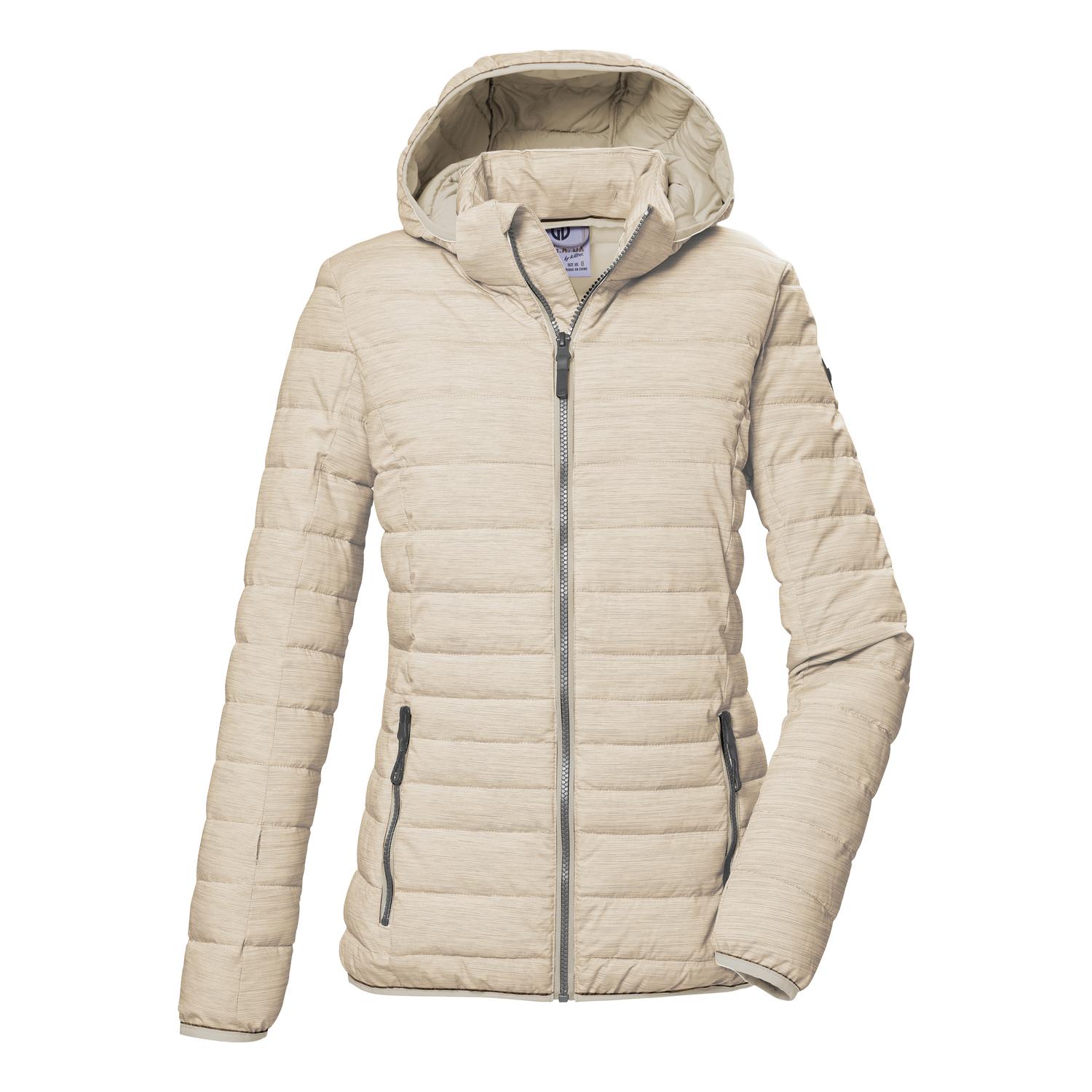 Damen Steppjacke mit abzippbarer Kapuze wasserabweisend und winddicht, Wassersäule 8.000 mm PFAS-freie Imprägnierung und teilweise recyceltes Material Reißverschluss mit Kinnschutz, verschließbare Taschen Saum und Ärmelabschlüsse elastisch Name: GS 63 WMN QLTD JCKT_Uyaka Saison: Frühjahr/Sommer Die G.I.G.A. DX Damen Steppjacke in dezenter Streifenoptik und mit farbig abgesetzten Ziernähten ist der perfekte Begleiter an kühlen Sommertagen und in der Übergangszeit. Die Jacke ist wasserabweisend, winddicht und gleichzeitig atmungsaktiv. Die Kapuze lässt sich bei Bedarf abnehmen. Die zwei Seitentaschen sind mit Zippern verschließbar, sodass nichts verloren geht. Der Frontreißverschluss ist mit einem praktischen Kinnschutz ausgestattet, um ein Einklemmen der Haut zu vermeiden. Saum und Ärmelabschlüsse sind elastisch und sorgen so für einen guten Sitz. killtec liegt es besonders am Herzen, die Kollektionen nachhaltiger und zukunftsfähiger zu machen. So setzt killtec verstärkt auf verantwortungsbewusstere Herstellungsverfahren. Diese Jacke wurde daher PFAS-frei imprägniert und teilweise aus recyceltem Material gefertigt.