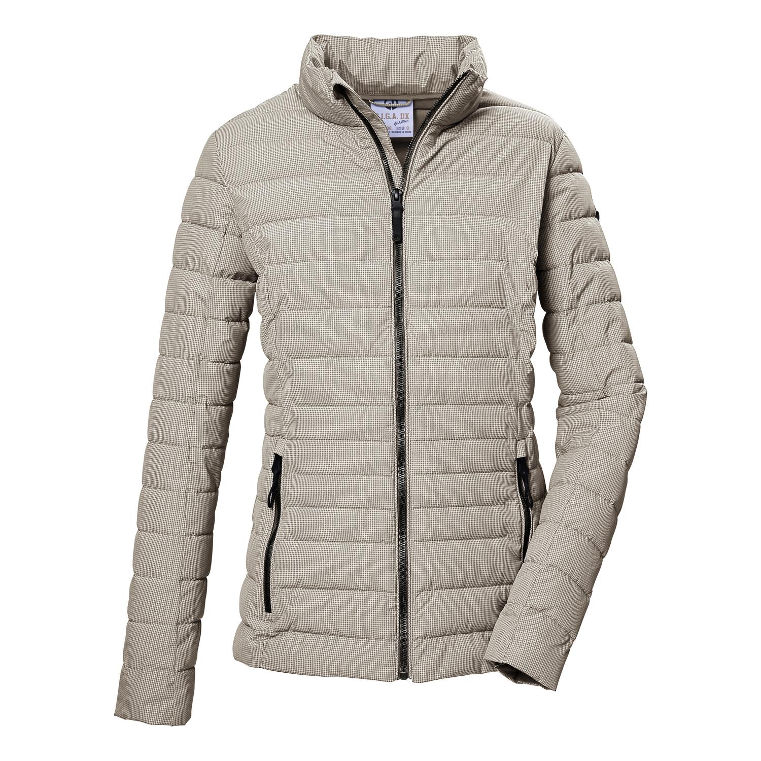 Leichte Damen Steppjacke wasserabweisend und winddicht, Wassersäule 8.000 mm PFAs-freie Imprägnierung und aus recyceltem Material dünn gefüttert praktische Zippertaschen, Reißverschluss mit Kinnschutz Name: GS 64 WMN QLTD JCKT Saison: Frühjahr/Sommer Die gemusterte Damen Steppjacke von G.I.G.A. DX ist dünn gefüttert und der perfekte Begleiter an kühlen Sommertagen und in der Übergangszeit. Sie ist wasserabweisend und winddicht. Die zwei Seitentaschen sind mit Zippern verschließbar. Der Frontreißverschluss ist mit einem praktischen Kinnschutz ausgestattet, um ein Einklemmen der Haut zu vermeiden. killtec liegt es besonders am Herzen, die Kollektionen nachhaltiger und zukunftsfähiger zu machen. So setzt killtec verstärkt auf verantwortungsbewusstere Herstellungsverfahren. Diese Jacke wurde daher PFAS-frei imprägniert und teilweise aus recyceltem Material gefertigt.