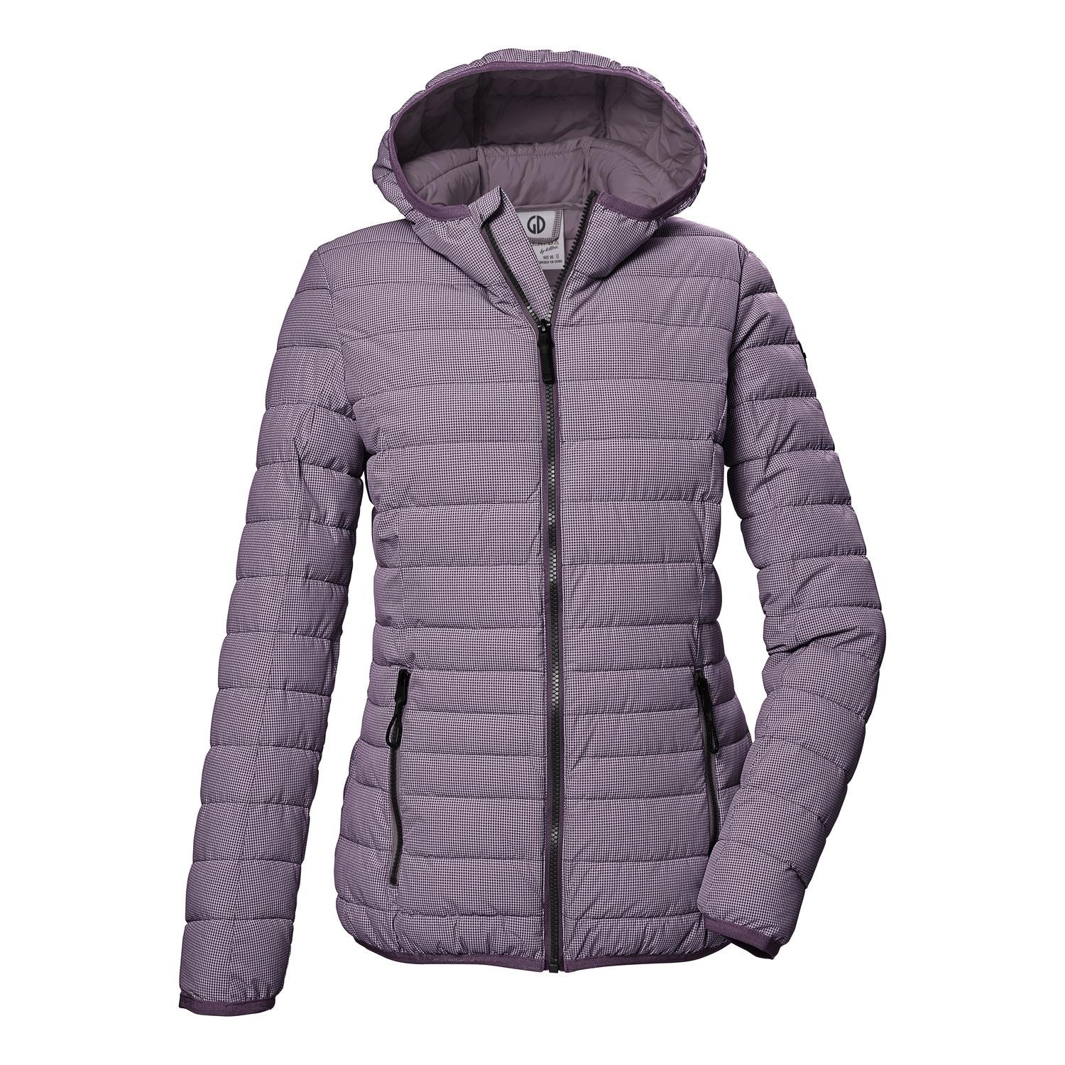 Leichte Damen Steppjacke mit Kapuze wasserabweisend und winddicht, Wassersäule 8.000 mm PFAs-freie Imprägnierung und aus recyceltem Material Saum und Bündchen elastisch praktische Reißverschlusstaschen auf beiden Seiten Name: GS 65 WMN QLTD JCKT Saison: Frühjahr/Sommer Die gemusterte Damen Steppjacke mit Kapuze von G.I.G.A. DX ist wasserabweisend, winddicht und gleichzeitig atmungsaktiv. Saum und Ärmelbündchen sind elastisch und sorgen für einen guten Sitz. Die zwei Seitentaschen sind mit Zippern verschließbar. Der Reißverschluss ist mit einem praktischen Kinnschutz ausgestattet. killtec liegt es besonders am Herzen, die Kollektionen nachhaltiger und zukunftsfähiger zu machen. So setzt killtec verstärkt auf verantwortungsbewusstere Herstellungsverfahren. Diese Jacke wurde daher PFAS-frei imprägniert und teilweise aus recyceltem Material gefertigt.