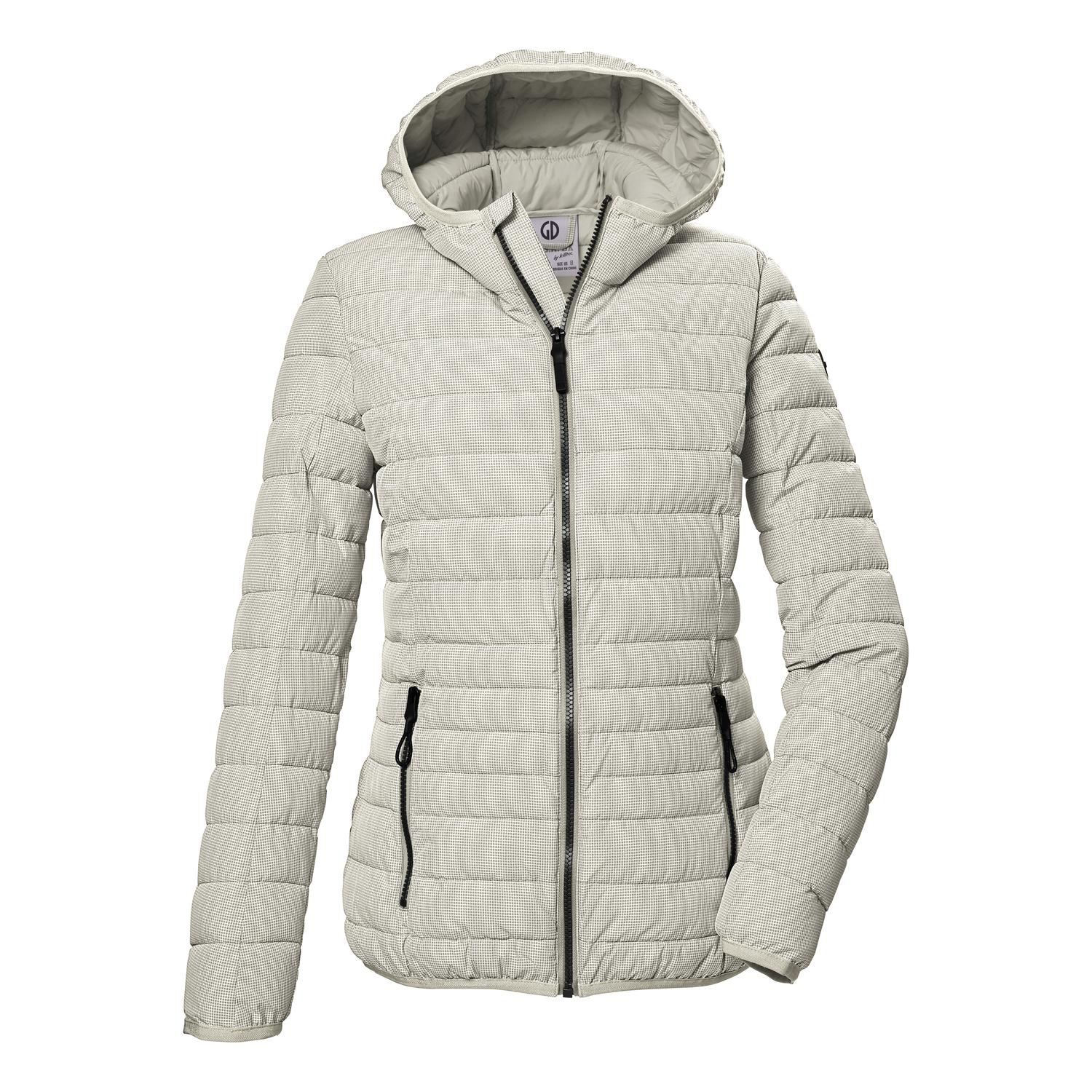 Leichte Damen Steppjacke mit Kapuze wasserabweisend und winddicht, Wassersäule 8.000 mm PFAs-freie Imprägnierung und aus recyceltem Material Saum und Bündchen elastisch praktische Reißverschlusstaschen auf beiden Seiten Name: GS 65 WMN QLTD JCKT Saison: Frühjahr/Sommer Die gemusterte Damen Steppjacke mit Kapuze von G.I.G.A. DX ist wasserabweisend, winddicht und gleichzeitig atmungsaktiv. Saum und Ärmelbündchen sind elastisch und sorgen für einen guten Sitz. Die zwei Seitentaschen sind mit Zippern verschließbar. Der Reißverschluss ist mit einem praktischen Kinnschutz ausgestattet. killtec liegt es besonders am Herzen, die Kollektionen nachhaltiger und zukunftsfähiger zu machen. So setzt killtec verstärkt auf verantwortungsbewusstere Herstellungsverfahren. Diese Jacke wurde daher PFAS-frei imprägniert und teilweise aus recyceltem Material gefertigt.