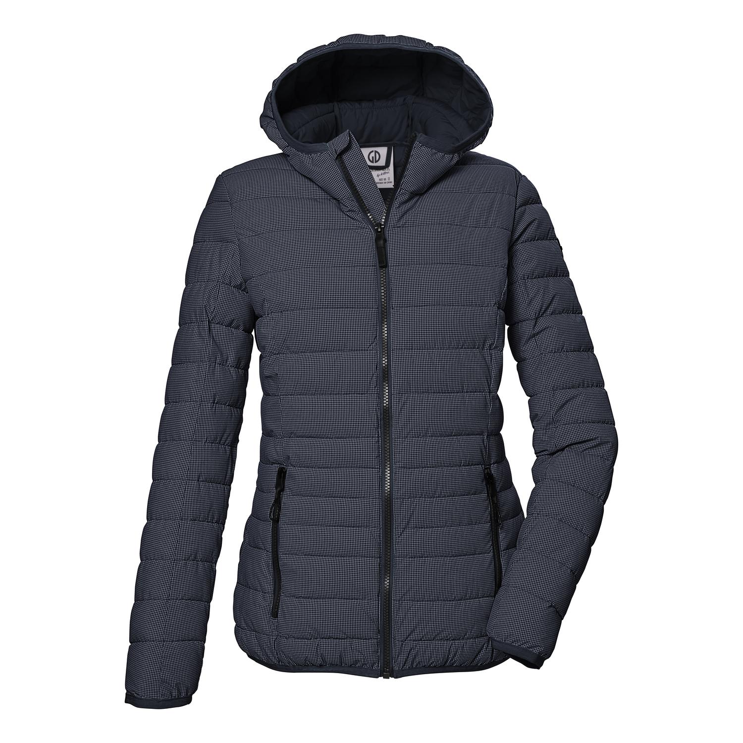 Leichte Damen Steppjacke mit Kapuze wasserabweisend und winddicht, Wassersäule 8.000 mm PFAs-freie Imprägnierung und aus recyceltem Material Saum und Bündchen elastisch praktische Reißverschlusstaschen auf beiden Seiten Name: GS 65 WMN QLTD JCKT Saison: Frühjahr/Sommer Die gemusterte Damen Steppjacke mit Kapuze von G.I.G.A. DX ist wasserabweisend, winddicht und gleichzeitig atmungsaktiv. Saum und Ärmelbündchen sind elastisch und sorgen für einen guten Sitz. Die zwei Seitentaschen sind mit Zippern verschließbar. Der Reißverschluss ist mit einem praktischen Kinnschutz ausgestattet. killtec liegt es besonders am Herzen, die Kollektionen nachhaltiger und zukunftsfähiger zu machen. So setzt killtec verstärkt auf verantwortungsbewusstere Herstellungsverfahren. Diese Jacke wurde daher PFAS-frei imprägniert und teilweise aus recyceltem Material gefertigt.