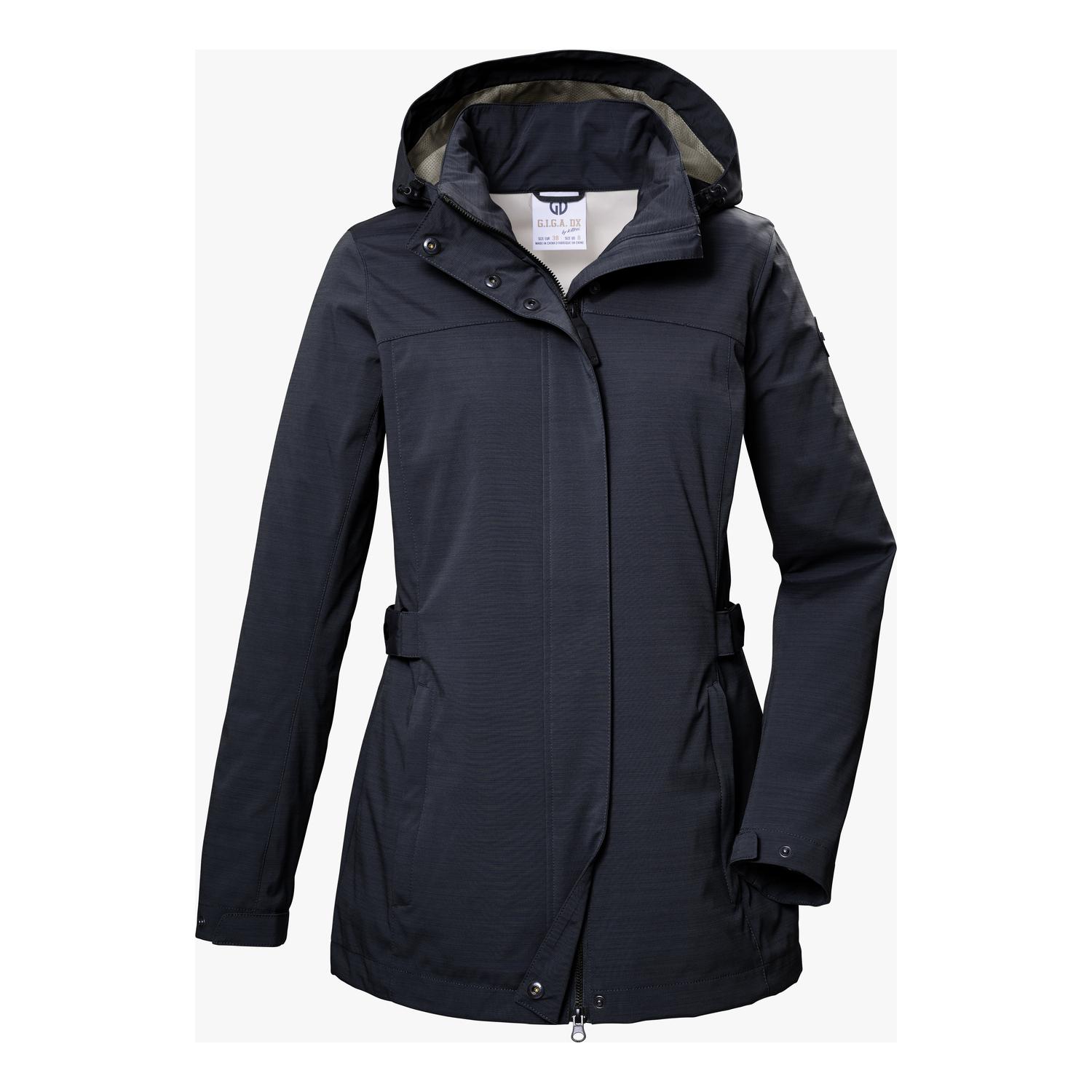 Damen Softshelljacke mit abzippbarer Kapuze winddicht, wasserabweisend, Wassersäule 8.000 mm PFAs-freie Imprägnierung – gut für dich und die Umwelt verdeckter 2-Wege-Reißverschluss mit Kinnschutz Taillenweite, Kapuze und Ärmelbündchen regulierbar Innenfutter Mesh-Material Taschen mit Zippern, Handytasche innen Name: GS 75 WMN SFTSHLL JCKT Saison: Frühjahr/Sommer Die Damen Softshelljacke von G.I.G.A. DX ist perfekt für die Übergangszeit und nasskalte Sommertage. Sie ist mit einer 8.000 mm Wassersäule wasserabweisend und gleichzeitlich atmungsaktiv. Das Innenfutter besteht aus leichtem Mesh-Material. Die Taillenweite lässt sich durch seitliche Riegel verstellen. Die Kapuze ist regulierbar und lässt sich bei Bedarf ganz abzippen. Die Ärmelbündchen sind durch Druckknöpfe verstellbar. Der verdeckte 2-Wege-Reißverschluss sorgt für Bewegungsfreiheit und ist mit einem Kinnschutz versehen, der ein Einklemmen der Haut verhindert. Zwei Seitentaschen sowie eine Innentasche bieten Stauraum für Handy und Co. killtec ist ständig bestrebt, die Kollektionen nachhaltiger und zukunftsfähiger zu machen. So setzt killtec verstärkt auf verantwortungsbewusstere Herstellungsverfahren. Diese Jacke wurde daher PFAS-frei imprägniert.