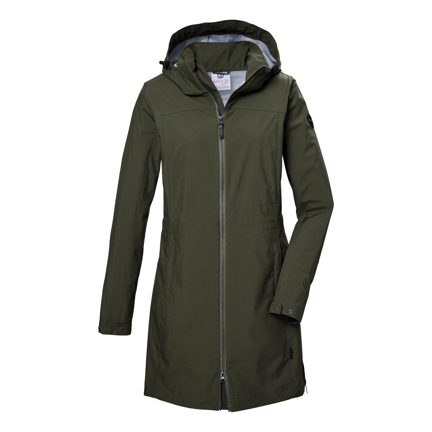 Damen Softshell Parka mit Kapuze wasserabweisend, Wassersäule 8.000 mm PFAs-freie Imprägnierung – gut für dich und die Umwelt 2-Wege-Reißverschluss mit Kinnschutz Taillenweite, Kapuze und Ärmelbündchen regulierbar praktische Taschen Name: GS 76 WMN SFTSHLL PRK Saison: Frühjahr/Sommer Der Damen Softshell Parka mit Kapuze von G.I.G.A. DX ist perfekt für die Übergangszeit und kühle Sommertage. Er schützt mit einer 8.000 mm Wassersäule vor Wind und Regen und ist gleichzeitlich atmungsaktiv. Die Kapuze ist regulierbar und bei Bedarf abzippbar. Die Taillenweite lässt sich anhand eines innenliegenden Kordelzuges verstellen. Der Parka hat zwei Seitentaschen. Die Ärmelbündchen sind mithilfe von Druckknöpfen regulierbar. Der 2-Wege-Reißverschluss lässt sich von oben und unten öffnen und sorgt für Bewegungsfreiheit. killtec ist ständig bestrebt, die Kollektionen nachhaltiger und zukunftsfähiger zu machen. So setzt killtec verstärkt auf verantwortungsbewusstere Herstellungsverfahren. Dieser Parka wurde daher PFAS-frei imprägniert.
