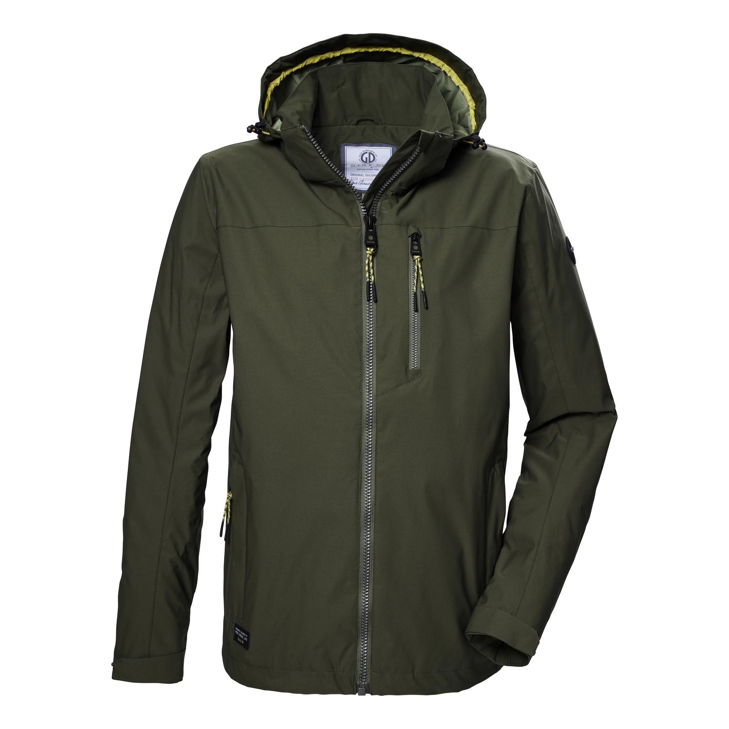 Herren Funktionsjacke mit abzippbarer Kapuze winddicht, wasserabweisend, Wassersäule 8.000 mm PFAs-freie Imprägnierung und aus recyceltem Material Weitenregulierung am Ärmelbund und Saum Reißverschluss mit Kinnschutz Name: GS 81 MN JCKT Saison: Frühjahr/Sommer Die Herren Funktionsjacke von G.I.G.A. DX ist citytauglich, aber auch für den Spaziergang in der Natur geeignet. Sie ist mit einer Wassersäule von 8.000 mm wasserabweisend und winddicht. Die Kapuze mit Schirm ist verstellbar und lässt sich bei Bedarf abnehmen. Die beiden Eingrifftaschen und die Brusttasche lassen sich mit Zippern verschließen. Die Innentasche bietet zusätzlichen Stauraum. Die Ärmelabschlüsse lassen sich anhand von Druckknöpfen verstellen, die Weite des Saums lässt sich durch einen Kordelzug regulieren. Der Kinnschutz am Frontreißverschluss verhindert ein Einklemmen der Haut. killtec liegt es besonders am Herzen, die Kollektionen nachhaltiger und zukunftsfähiger zu machen. So setzt killtec verstärkt auf verantwortungsbewusstere Herstellungsverfahren. Die Jacke wurde daher PFAS-frei imprägniert und teilweise aus recyceltem Material gefertigt.