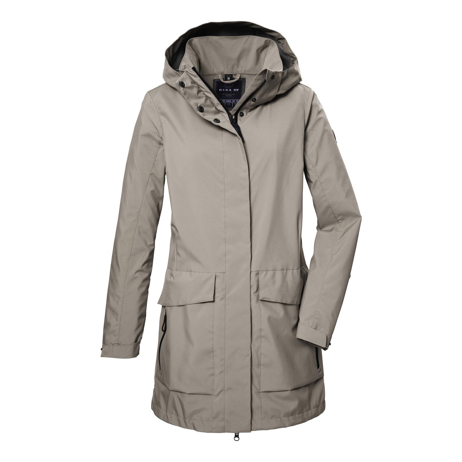 Damen Softshellparka mit abzippbarer Kapuze wind- und wasserabweisend, Wassersäule 10.000 mm atmungsaktiv (5.000 g/m²/24 h) und winddicht PFAS-freie Imprägnierung und teilweise recyceltes Material Ärmelbündchen und Taillenweite regulierbar verdeckter 2-Wege-Reißverschluss, große Taschen Name: GS 95 WMN SFTSHLL PRK Saison: Frühjahr/Sommer Der Damen Softshellparka von G.I.G.A. DX hält widrigem Wetter stand und zeichnet sich gleichzeitig durch seinen urbanen Look aus. Mit einer Wassersäule von 10.000 mm ist der Parka wasser- und windabweisend. Dabei ist er atmungsaktiv mit einer Wasserdampfdurchlässigkeit von 5.000 g/m²/24 h. Die Ärmelbündchen sind durch Klettverschlüsse verstellbar, die Taillenweite lässt sich durch einen innenliegenden Tunnelzug regulieren. Der verdeckte 2-Wege-Reißverschluss lässt sich von oben und unten öffnen und sorgt so für Bewegungsfreiheit. Zwei große aufgesetzte Taschen bieten Stauraum für Handy, Schlüssel und Co. killtec ist ständig bestrebt, die Kollektionen nachhaltiger und zukunftsfähiger zu machen. So setzt killtec verstärkt auf verantwortungsbewusstere Herstellungsverfahren. Dieser Parka wurde daher PFAS-frei imprägniert und teilweise aus recyceltem Material gefertigt!
