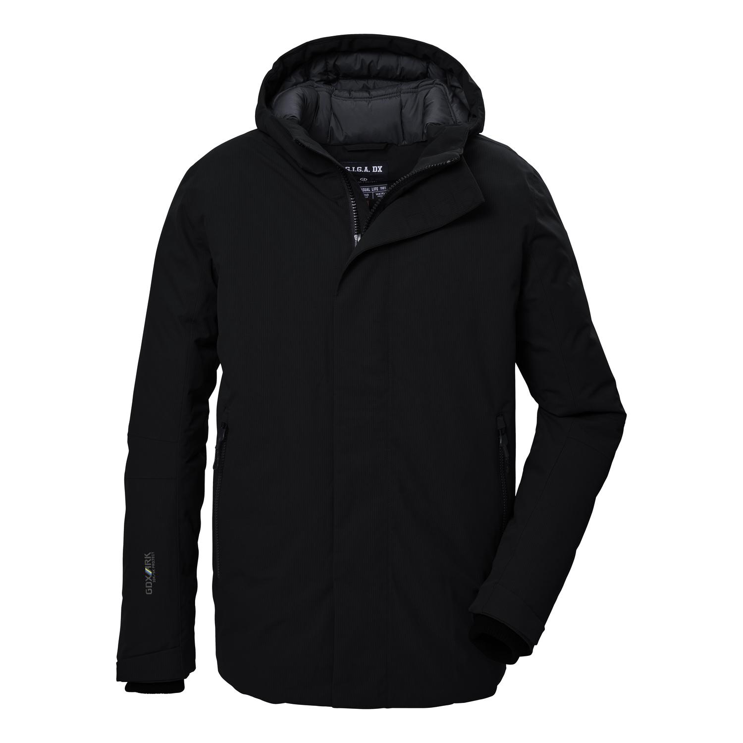 Herren Funktionsjacke mit verstellbarer Kapuzeverschweißte Nähte, wasserdicht, atmungsaktivReißverschluss mit Kinnschutz, praktische TaschenPFAs-freie Imprägnierung, recyceltes Materialverstellbare Ärmelabschlüsse mit StrickbündchenName: GW 11 MN JCKTSaison: Herbst/WinterDie Herren Funktionsjacke aus der Protection Kollektion von G.I.G.A. DX begleitet zuverlässig durch den Winter. Die Jacke hat verschweißte Nähte und ist mit einer 10.000 mm Wassersäule 100% wasserdicht (Achtung: Ab und zu sollte die Jacke neu imprägniert werden). Gleichzeitig ist sie atmungsaktiv mit einer Wasserdampfdurchlässigkeit von 5.000 g/m²/24 h. Die Kapuze und die Ärmelabschlüsse sind verstellbar. Der Saum lässt sich anhand eines Kordelzuges regulieren. Zwei Zippertaschen und zwei Innentaschen bieten ausreichend Stauraum. Der verdeckte Frontreißverschluss ist mit einem praktischen Kinnschutz versehen. Die Winterjacke ist außerdem mit modisch reflektierenden Elementen ausgestattet. killtec liegt es besonders am Herzen, die Kollektionen nachhaltiger und zukunftsfähiger zu machen. So setzt killtec verstärkt auf verantwortungsbewusstere Herstellungsverfahren. Diese Jacke wurde daher mit fluorfreien Mitteln imprägniert und wurde teilweise aus recyceltem Material hergestellt.