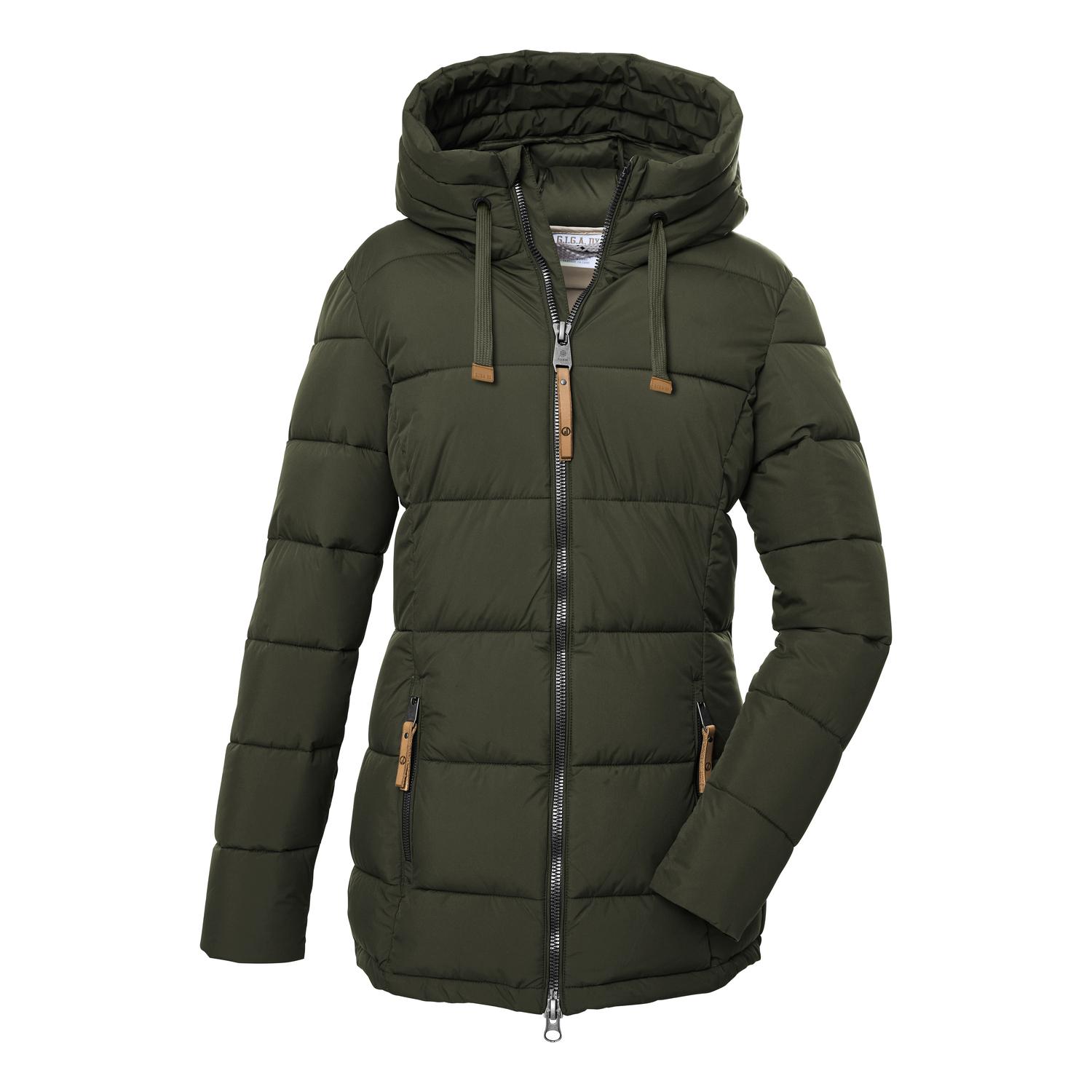 Damen Funktionsjacke in Daunenoptikwasserabweisend, (8.000 mm), atmungsaktiv, winddicht2-Wege-Reißverschluss, verschließbare Taschenhoher Kragen und regulierbare KapuzePFAs-freie Imprägnierung, gut für dich und die UmweltName: GW 12 WMN QLTD JCKTSaison: Herbst/WinterMit der Steppjacke in zeitlosem Citystyle von G.I.G.A. DX kann der Winter kommen. Der hohe Kragen und die regulierbare Kapuze schützen vor Wind und Kälte. Der atmungsaktive und wasserabweisende Oberstoff mit einer 8.000 mm Wassersäule sorgt für Wetterschutz und optimalen Tragekomfort. Der 2-Wege-Frontreißverschluss sorgt für Bewegungsfreiheit. Die beiden Eingrifftaschen lassen sich mit Zippern verschließen, sodass nichts verloren geht. killtec liegt es besonders am Herzen, die Kollektionen nachhaltiger und zukunftsfähiger zu machen. So setzt killtec verstärkt auf verantwortungsbewusstere Herstellungsverfahren. Diese Jacke wurde daher mit fluorfreien Mitteln imprägniert.